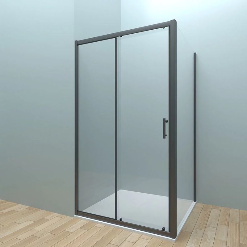 Душевое ограждение Veconi Rovigo RV-072 (VN72+KP05B), размер 100х90х190 см, профиль чёрный, стекло прозрачное, вход 379 мм. Габариты регулировки (945-995)х(860х885)х1900 мм. Дверь 100 см, душевая стенка 90 см.
