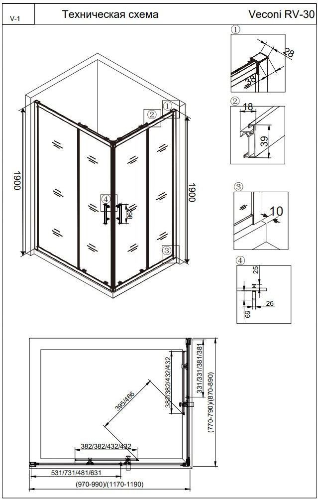 Описание Душевое ограждение Veconi RV30-10090PR-01-19C3