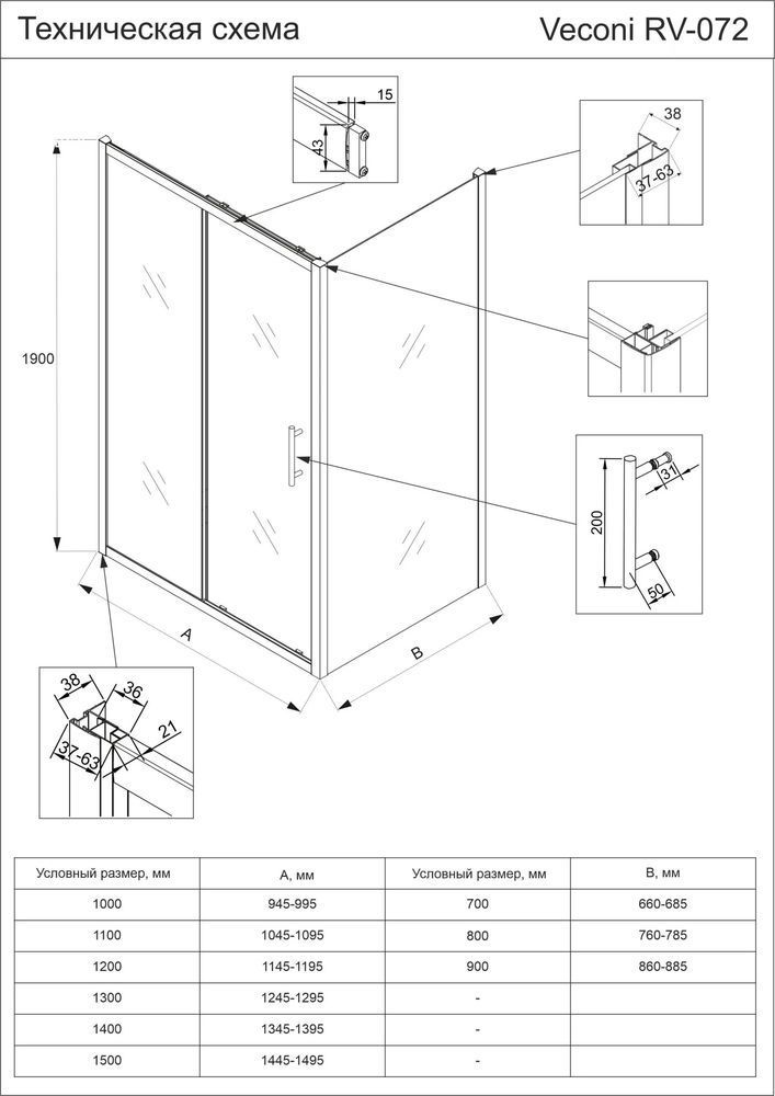 Характеристики Душевое ограждение Veconi (RV072B-110100-01-C4)