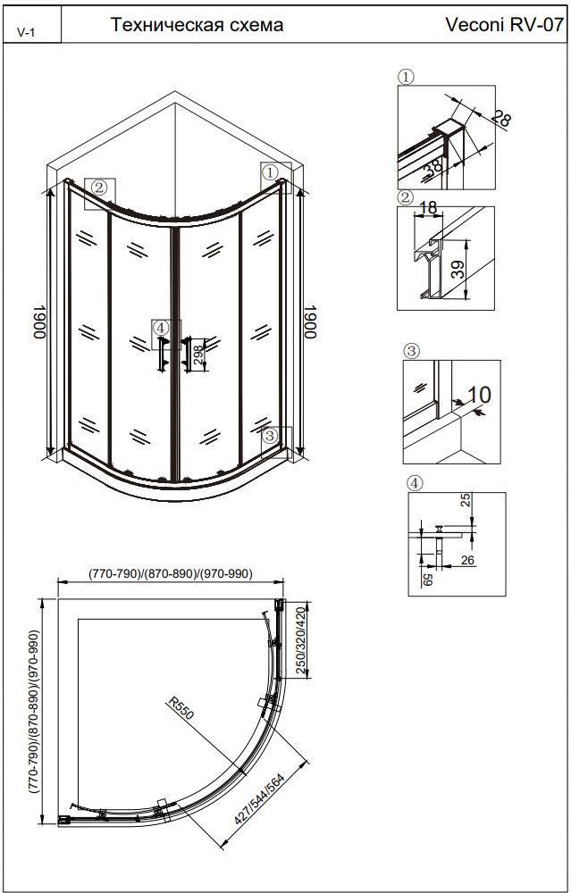 Описание Душевое ограждение Veconi RV07-90PL-01-19C3