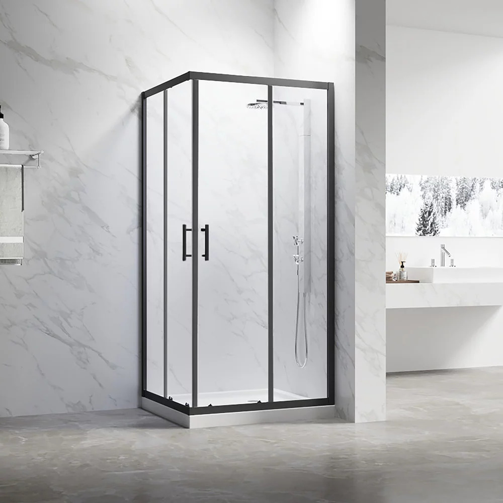 Душевое ограждение Veconi Rovigo 900x900x1900 мм, профиль черный матовый, стекло прозрачное 5 мм, ширина входа 505 мм. Габариты регулировки (880-900)х(880-900)х1900 мм.