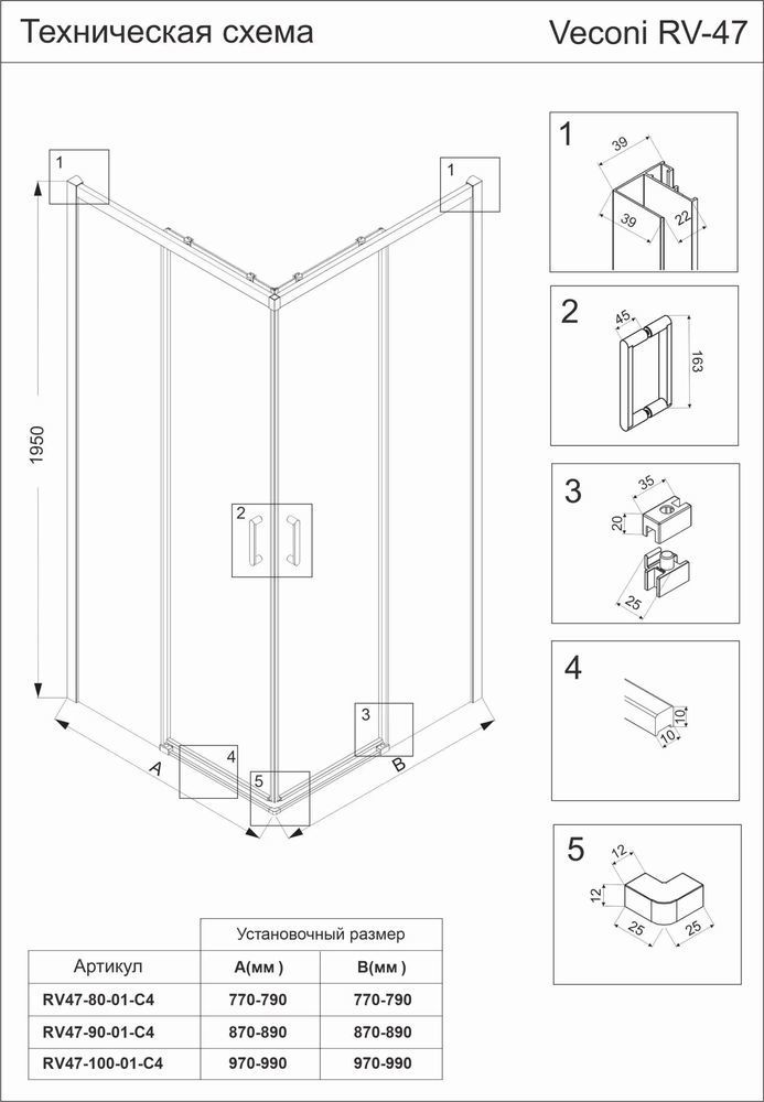 Описание Душевое ограждение Veconi RV47B-90-01-C4