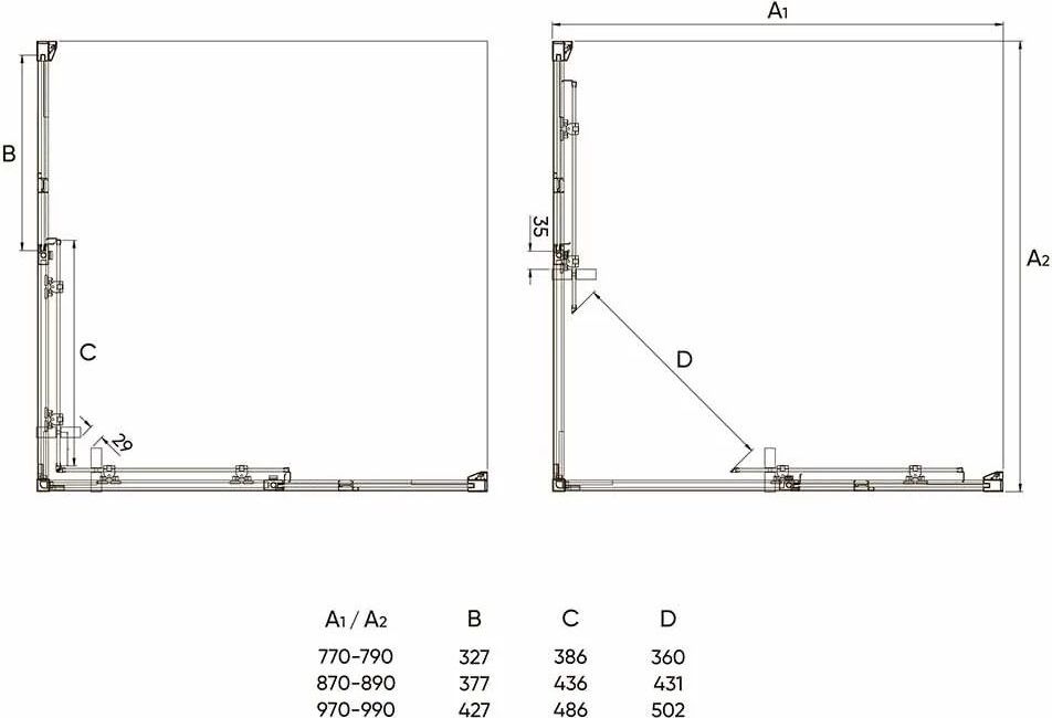 Душевое ограждение Veconi Rovigo, размер 90х90х195 см, профиль чёрный, стекло прозрачное, вход 431 мм. Габариты регулировки (870-890)х(870х890)х1950 мм.