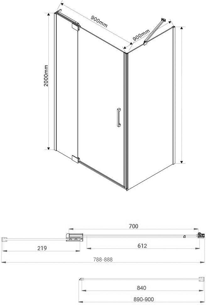 Душевое ограждение Vincea Extra 800-900х900х2000 мм, профиль - чёрный, стекло - тонированное 8 мм, ширина входа - 612 мм, габариты с диапазоном регулировок: 788-888 x 890-900 мм. Поддон приобретается отдельно.