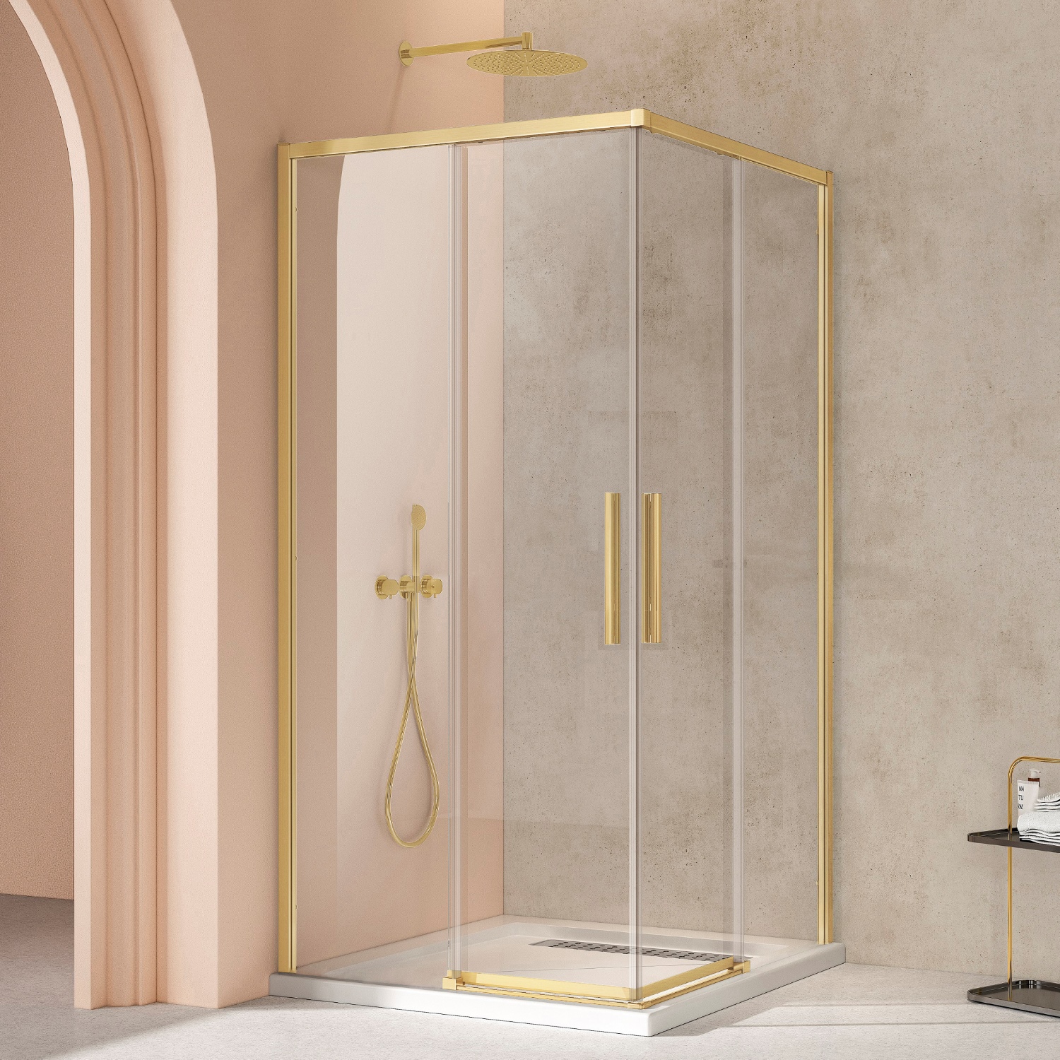 Душевое ограждение Vincea Slim 90x90 см VSS-4SL900CLB (стекло 8 мм) брашированное золото/прозрачное