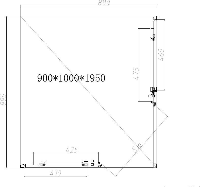 Душевое ограждение Vincea Slim-N 900х1000х1950 мм, профиль - черный, стекло - прозрачное 6 мм, ширина входа - 516 мм, габариты с диапазоном регулировок: 880-890 x 980-990 мм. Поддон приобретается отдельно.