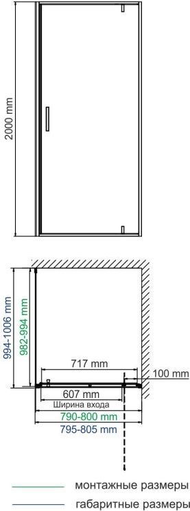 Душевое ограждение WasserKraft Elbe, размер 800х1000х2000 мм. Цвет профиля чёрный, цвет стекла прозрачное 6 мм. Габариты регулировки (790-800)х(982-994)х2000 мм, ширина входа 607 мм. Душевой поддон приобретается отдельно.