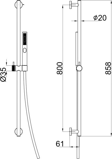 - Шланг 1.5 метра SUS304 (EPDM inside, anti-twist, brass nut)