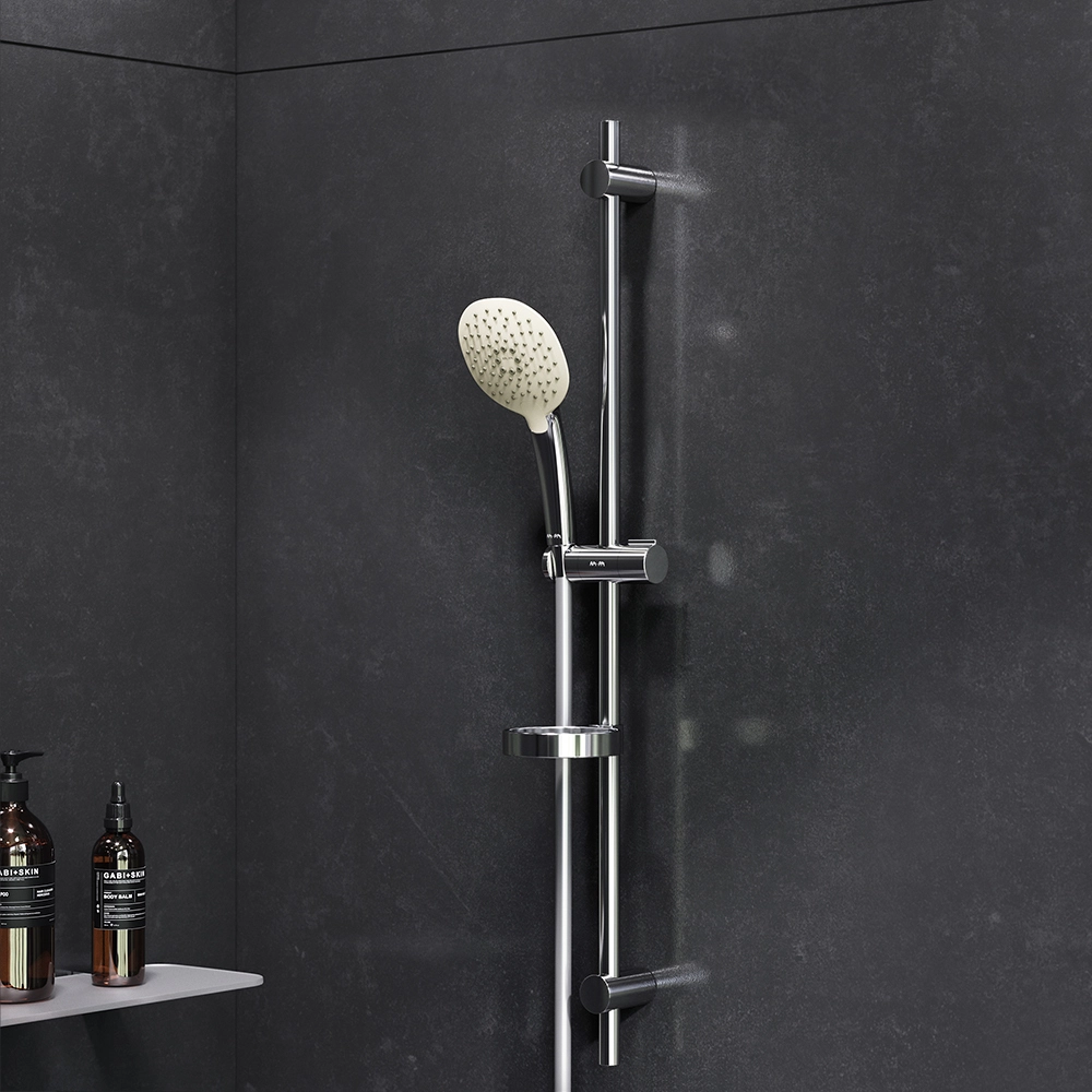 Экстраординарный дизайн: современный минималистичный стиль и экстра-функциональность. Уникальный рисунок и диаметр форсунок – дизайн равномерное распределение воды при любом напоре и обеспечивает максимум удовольствия от душа. Продуманные детали для удобства использования: регулируемые по высоте держатели душевой штанги 3 режима ручного душа (Spray EnerJet Spray + Massage переключатель режимов Simple Switch Push) функция Rub& Clean для легкой очистки душевых форсунок хромированная мыльница 110 мм регулируемый в трех плоскостях держатель ручного душа шарнирное соединение защищает душевой шланг от перекручивания.