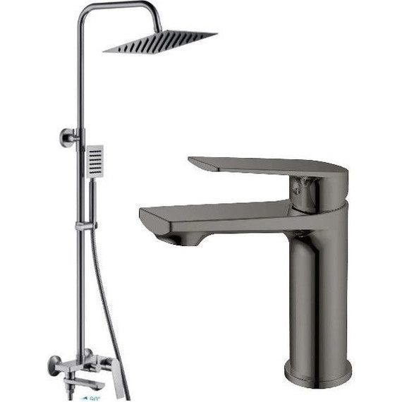 Душевой комплект Haiba: Душевая стойка HB24533-3 + смеситель для раковины HB10533-3, цвет графит