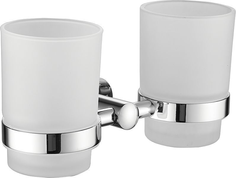 Двойной стакан для зубных щеток Belz B90008 с настенным держателем, материал нержавеющая сталь/стекло, цвет хром.