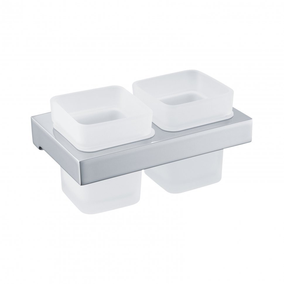 Двойной стакан для зубных щеток Grocenberg AC0022CR с настенным держателем, материал латунь/стекло, цвет хром.