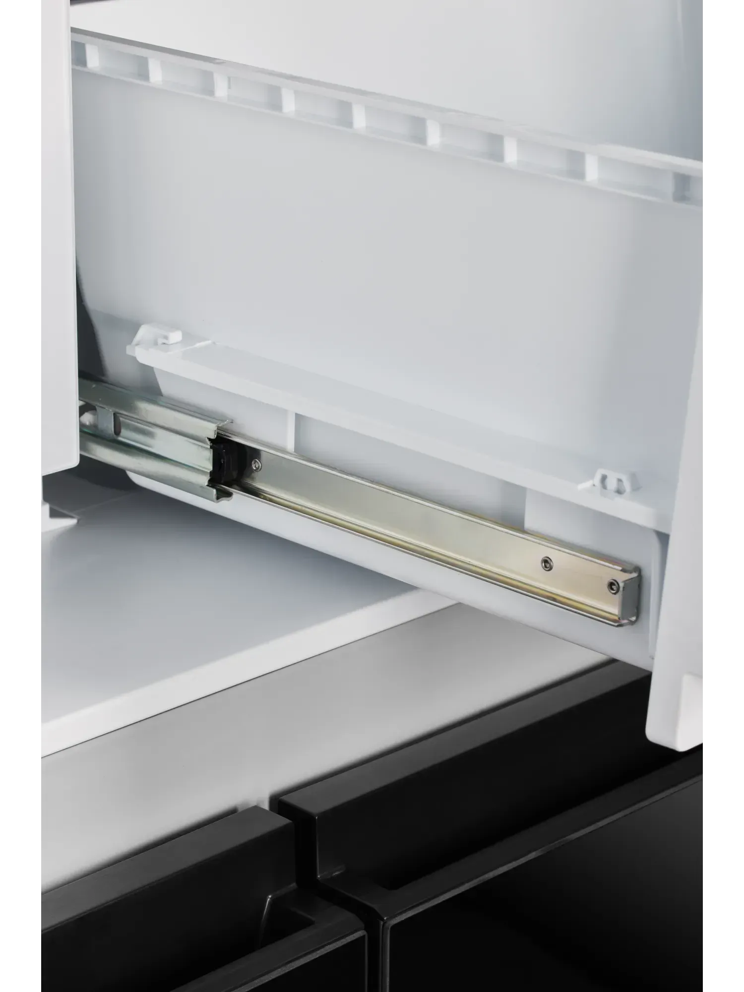- В камере расположены три выдвижных ящика на металлических направляющих, которые помогают поддерживать идеальный порядок среди продуктов: