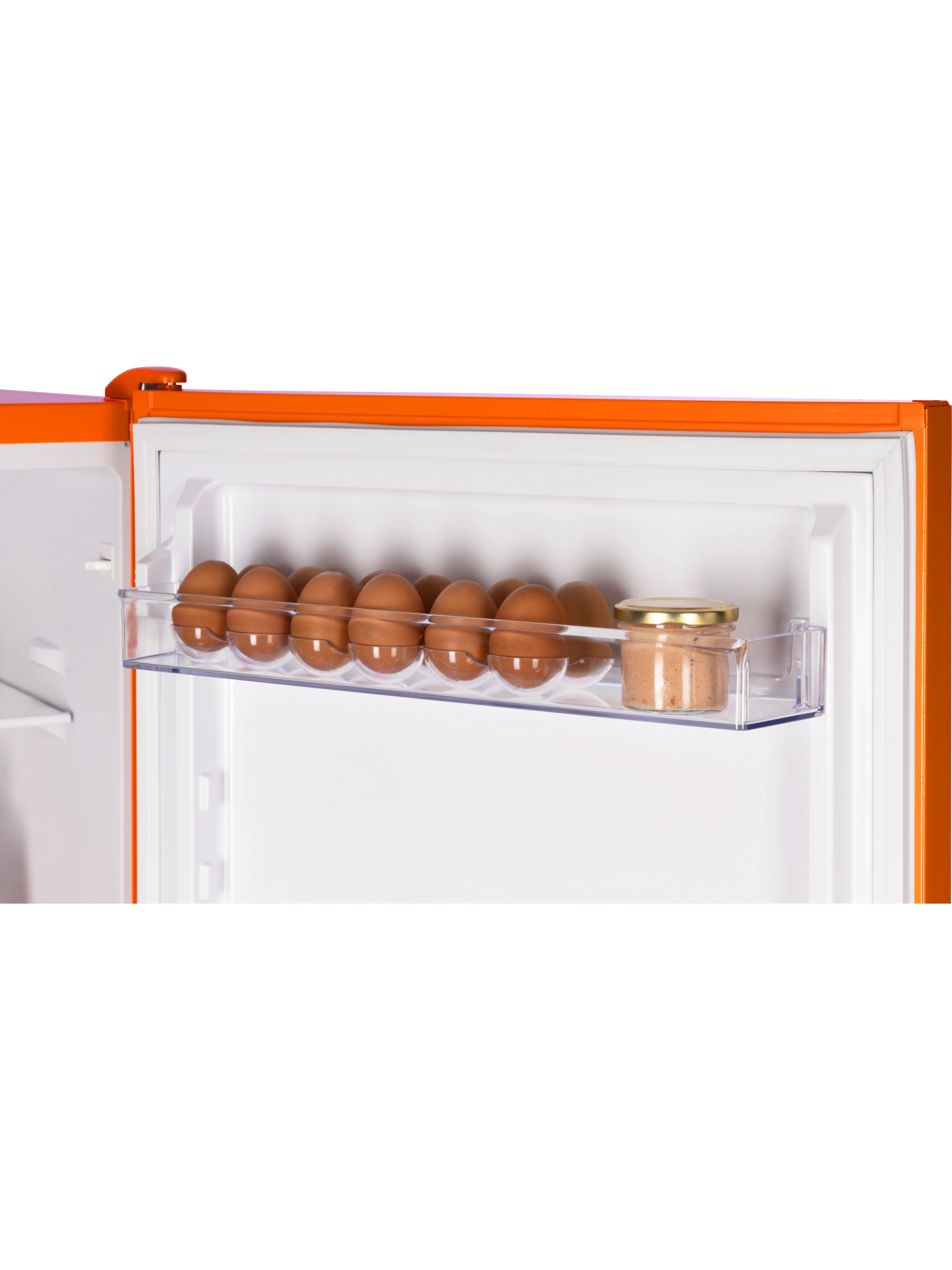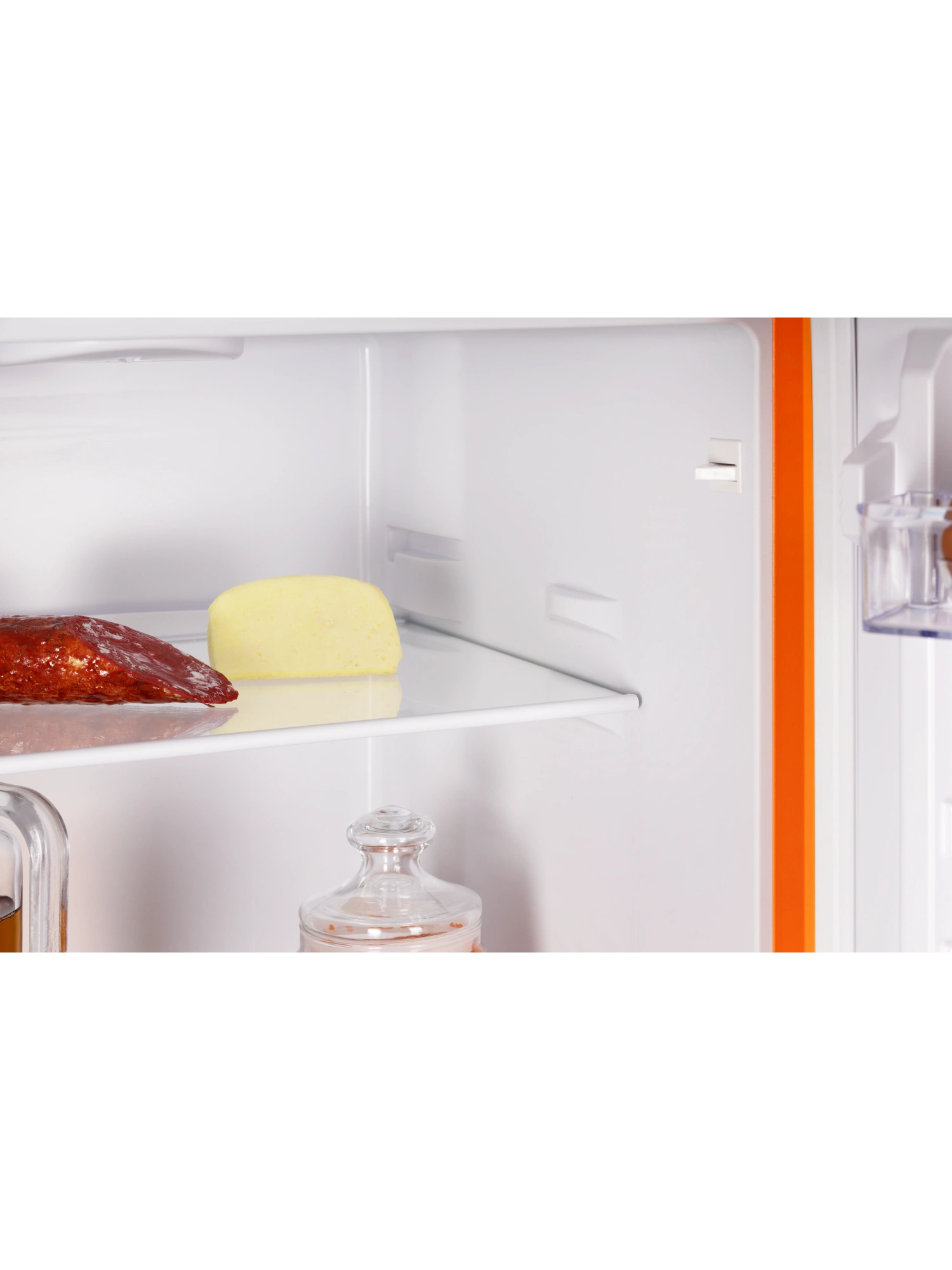 - Устройство объемом 240 литров вмещает продукты для всей семьи. Модель оранжевого матового цвета дополнена интегрированными горизонтальными ручками, которые не нарушают общую эстетику и придают устройству аккуратный, современный облик.