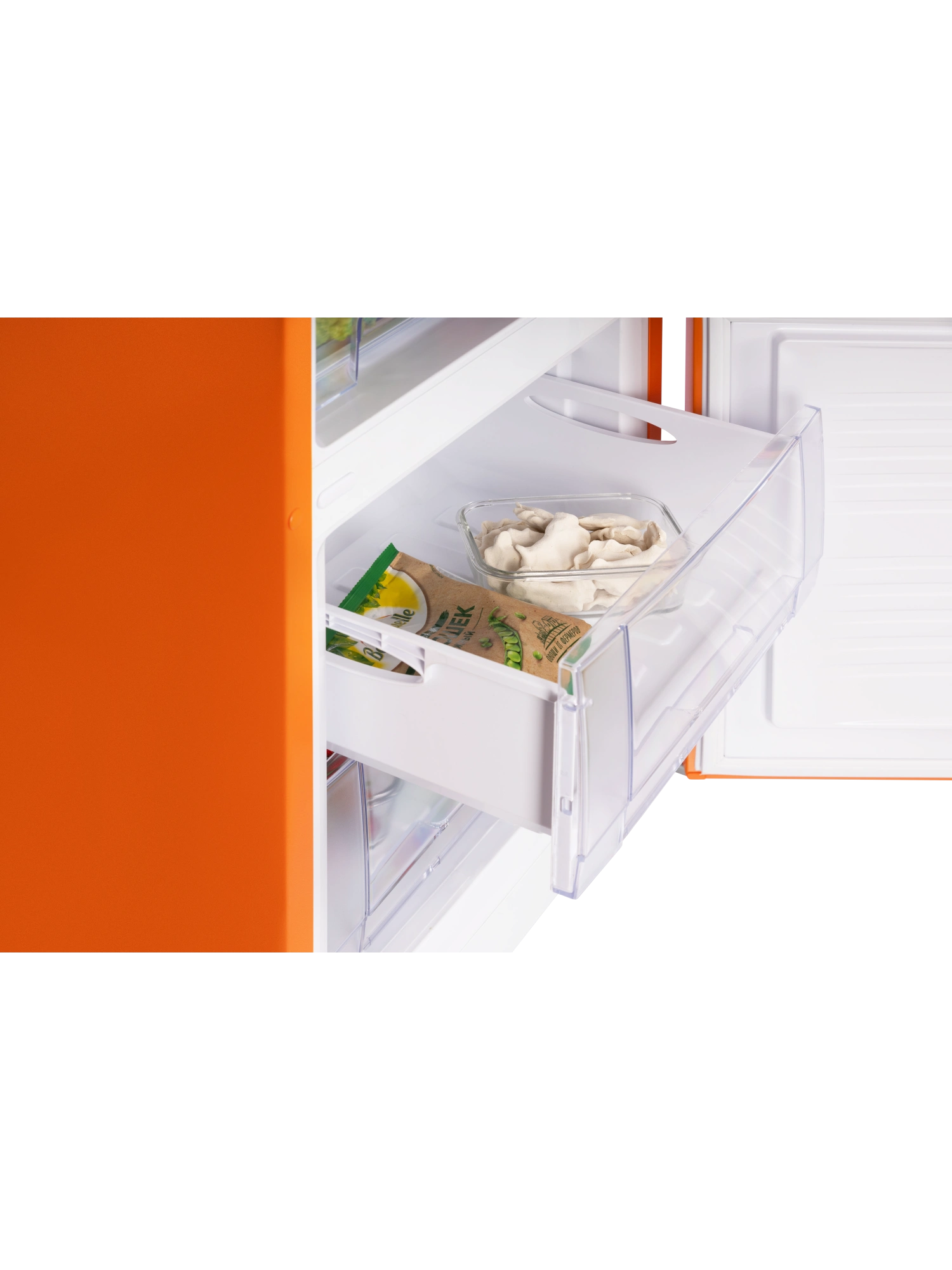 - 2 вместительных выдвижных ящика в морозильном отделении, удобных для размещения мяса, полуфабрикатов и заготовок.
