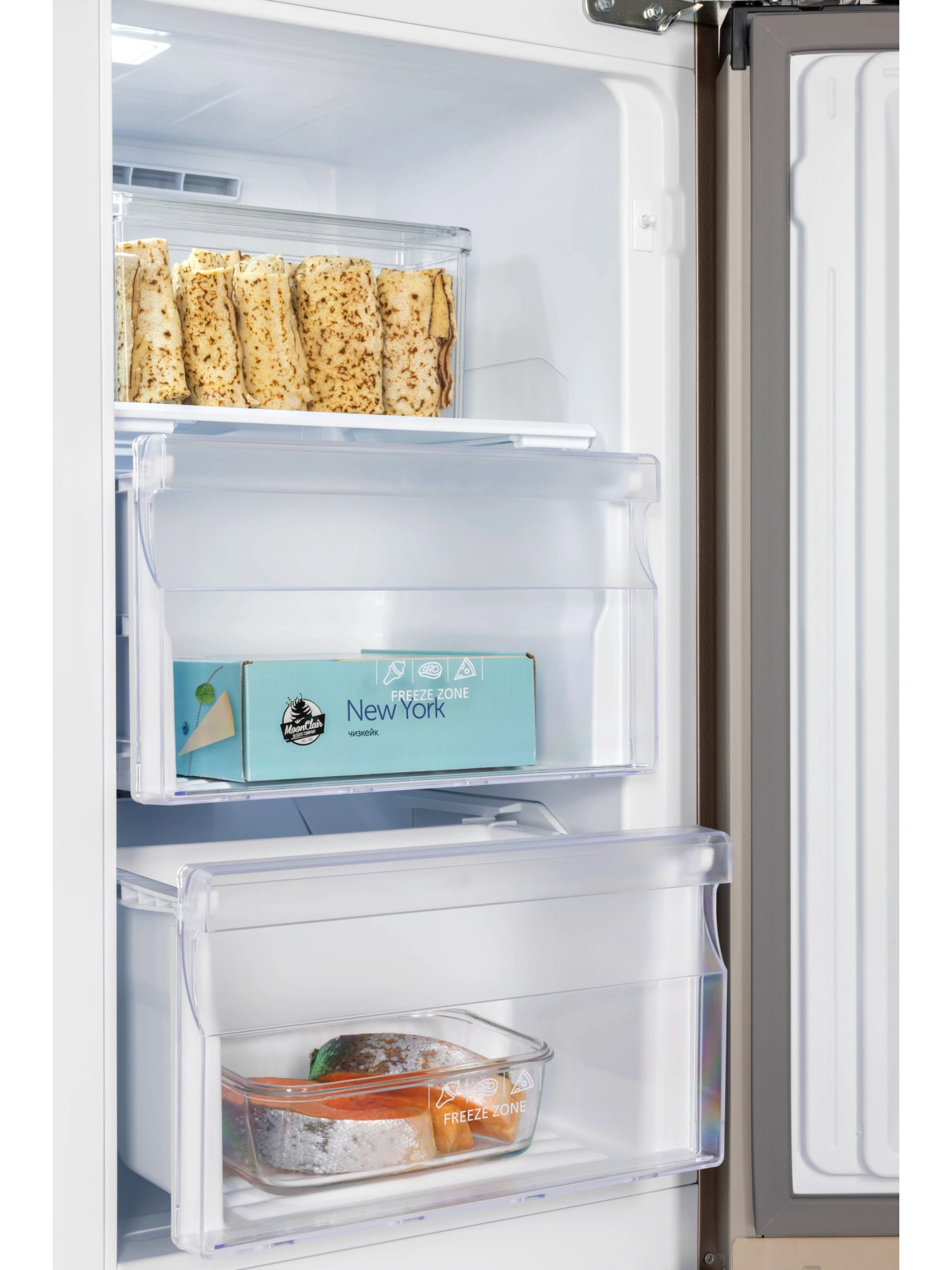 - Благодаря инверторному компрессору двухкамерный холодильник обладает высоким классом энергоэффективности А+ и обеспечивает умеренный расход электроэнергии. Низкий уровень шума в 42 дБ сохраняет комфортную для восприятия атмосферу в помещении.