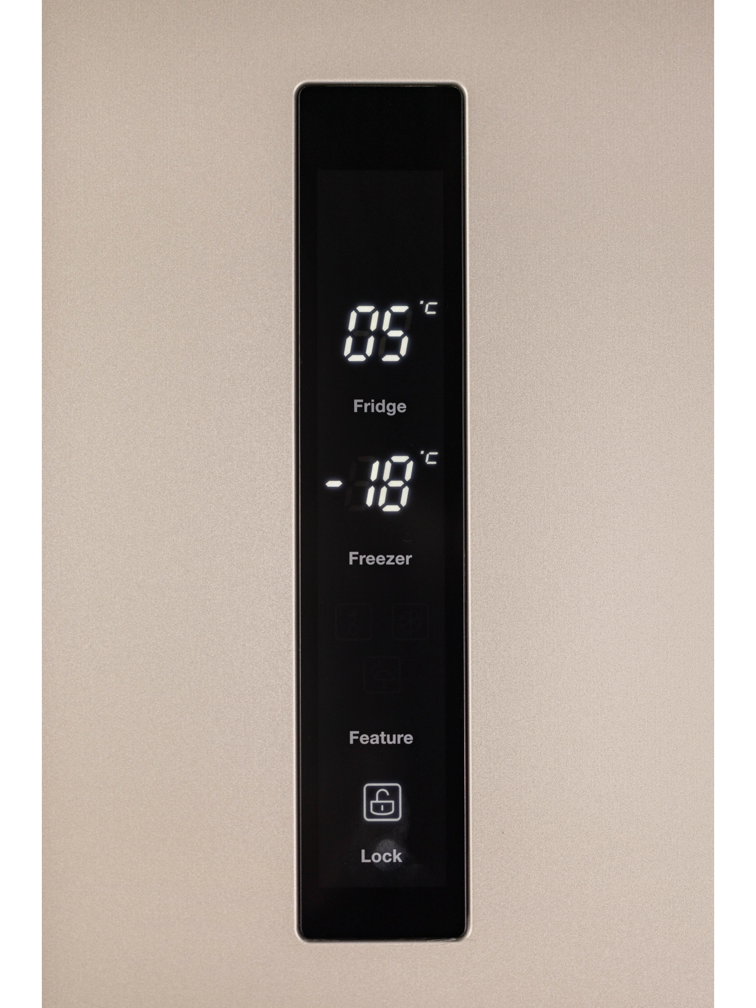 - На электронной панели управления индикаторы отображают актуальную температуру холодильного и морозильного отделений, режимы работы и блокировку.