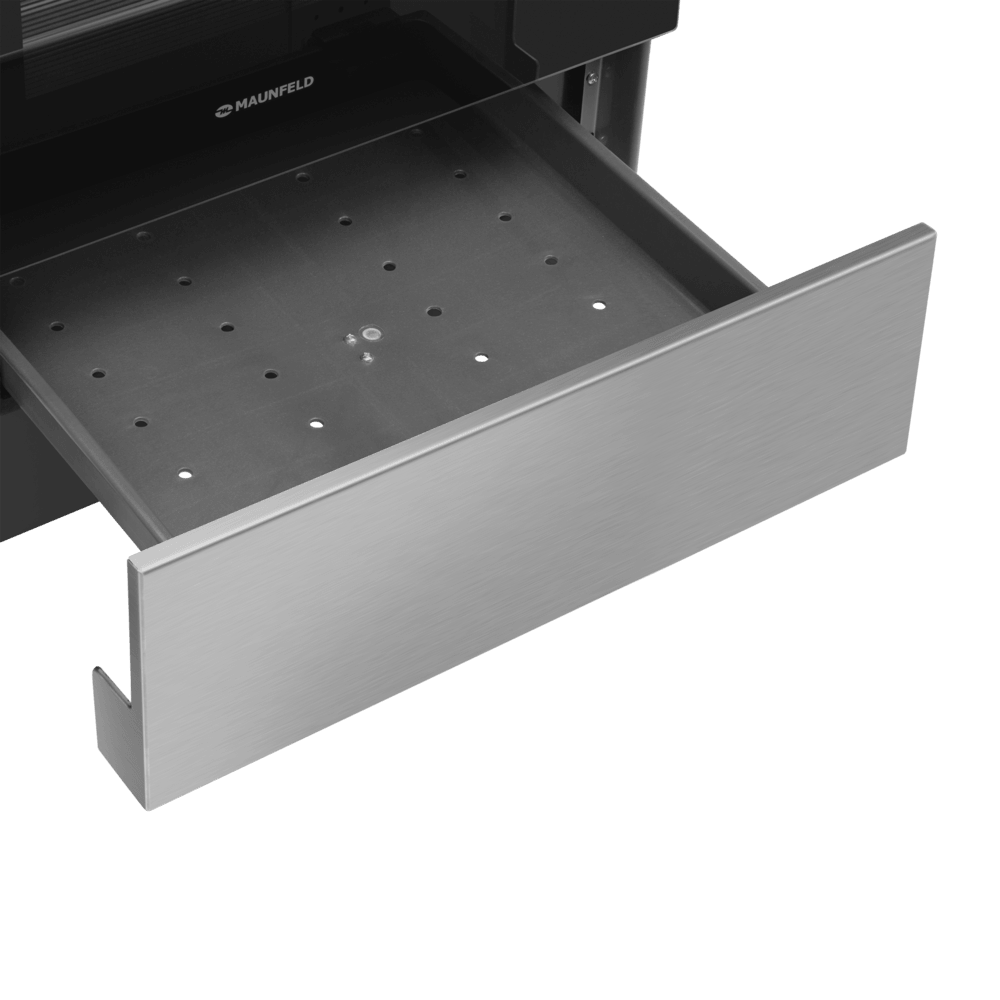 Ящик, расположенный внизу плиты, легко выдвигается и является удобным местом для хранения посуды, кастрюль и сковородок. Это освобождает дополнительное место и позволяет лучше использовать пространство на вашей кухне.