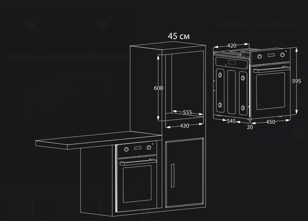 • Встраиваемый духовой шкаф HIBERG VM 4260 B с общим объемом 50 л имеет 6 режимов приготовления, функцию конвекции, дисплей и электронное управление.
