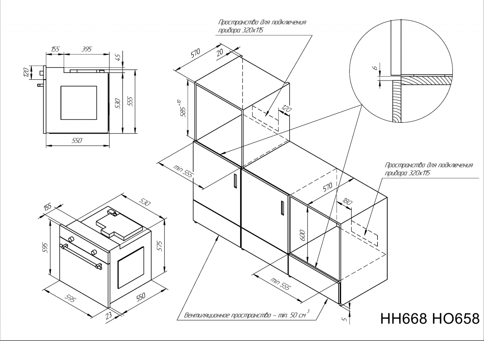 - Размер ниши для встраивания в колонну (В/Ш/Г), мм: 585(+10)x555x570