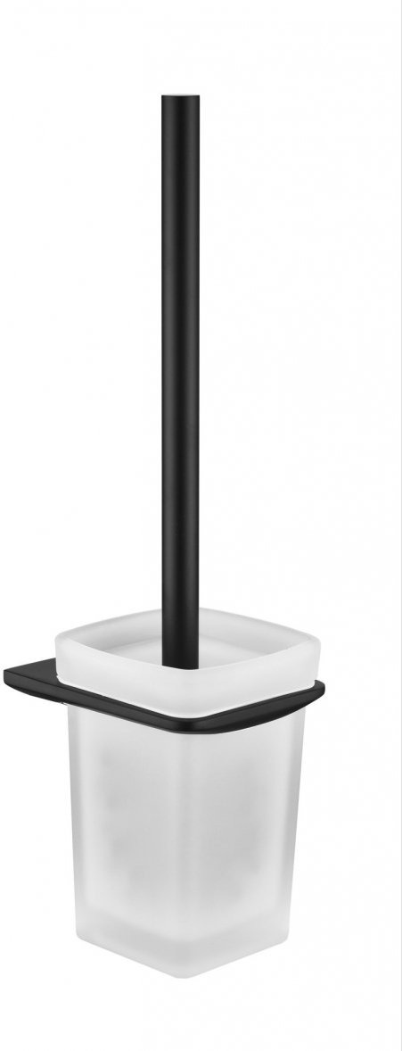 Ёршик для унитаза Grocenberg AC0057BL с настенным держателем, материал латунь/стекло, цвет чёрный матовый.