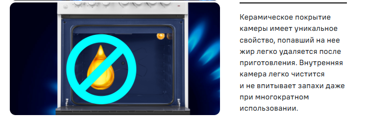 Одной из важнейших функций газовой плиты является система газ-контроль. Данная система автоматически прекратит подачу газа если пламя внезапно потухнет.