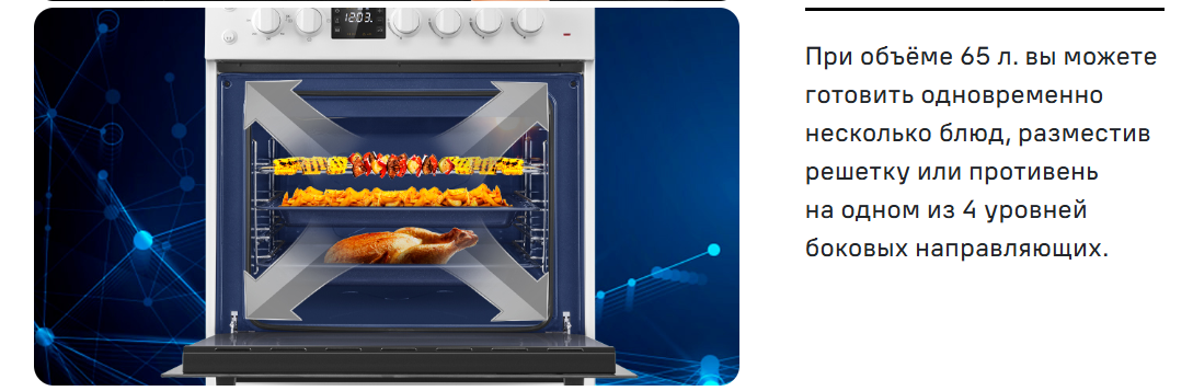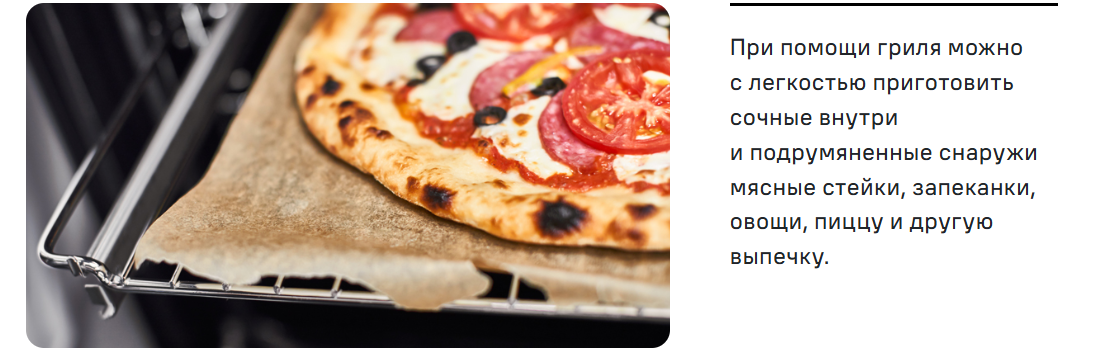 Духовка оснащена функцией гриль, которая идеально подойдет для приготовления сочной курочки с хрустящей корочкой. Все, что вам нужно – лишь выбрать режим, остальное духовка сделает за вас.