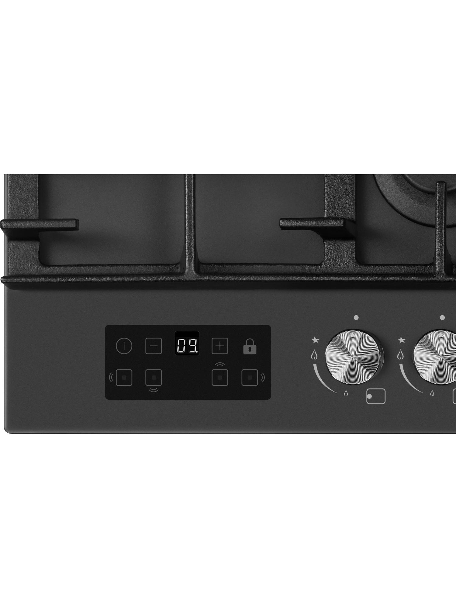 - Индивидуальный сенсорный таймер отключения газа даёт возможность контролировать время готовки каждого блюда. Таймер устанавливается с диапазоном от 1 до 99 минут, по истечении заданного времени конфорка отключается автоматически.