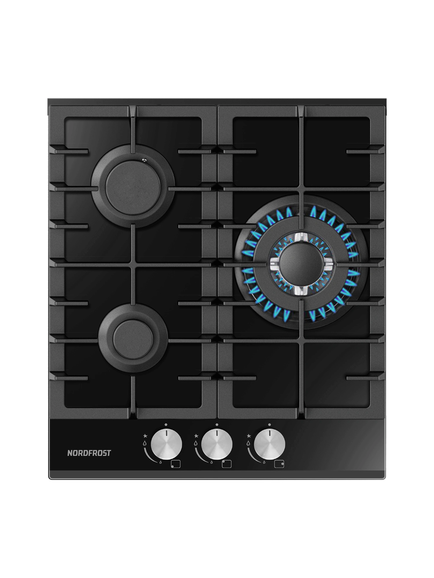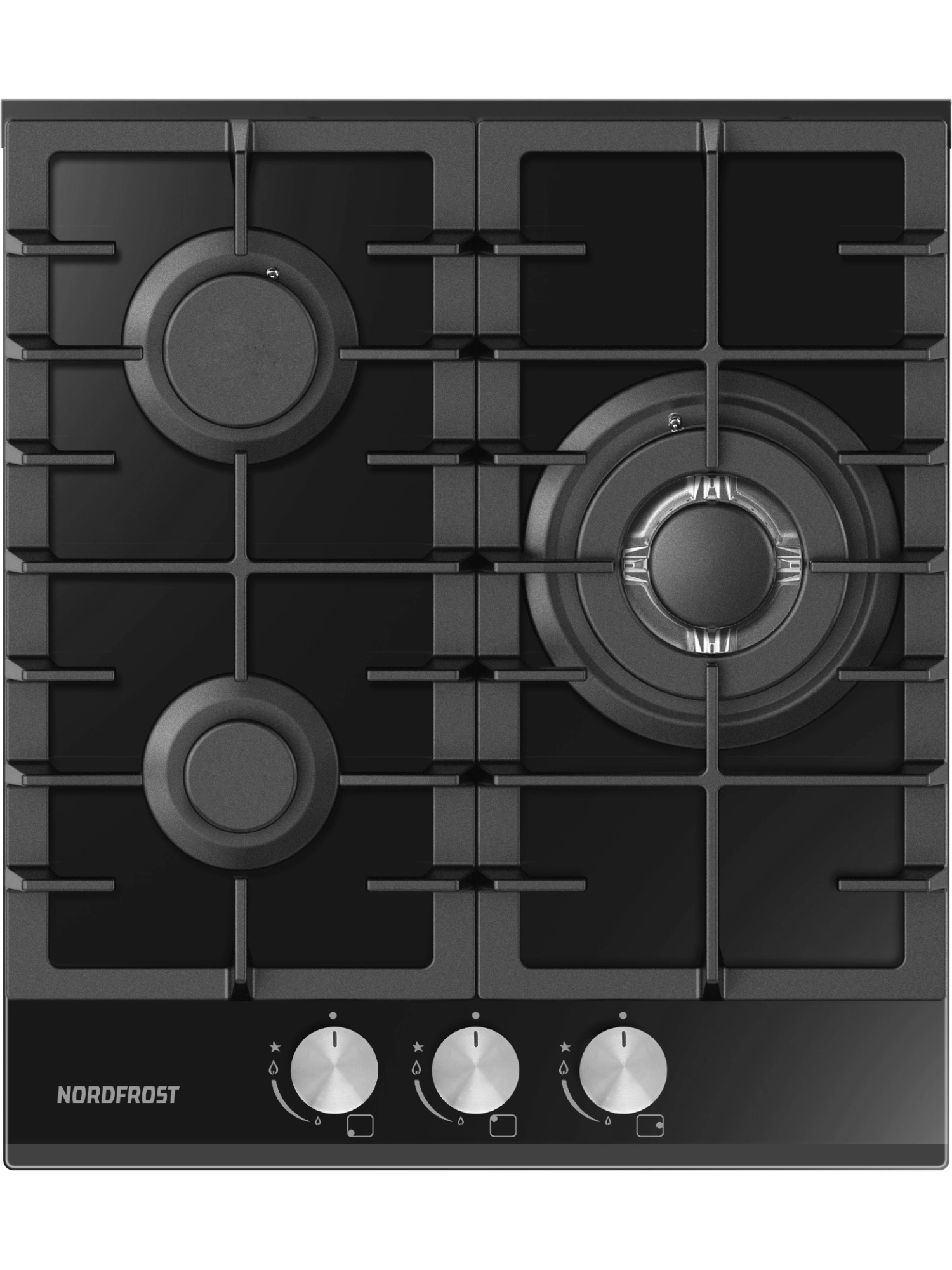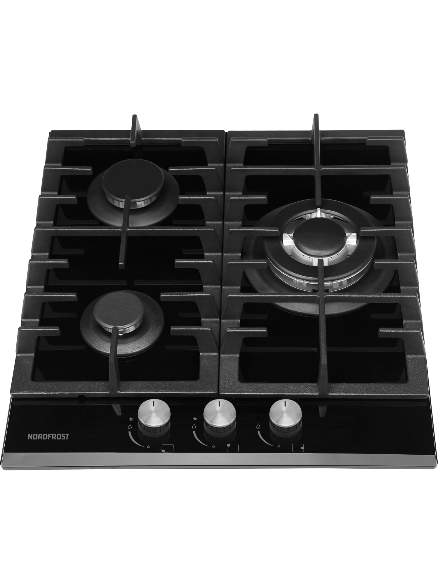 - Газовая варочная поверхность NORDFROST HM 4532 B с 3 конфорками выполнена из прочного закаленного стекла.