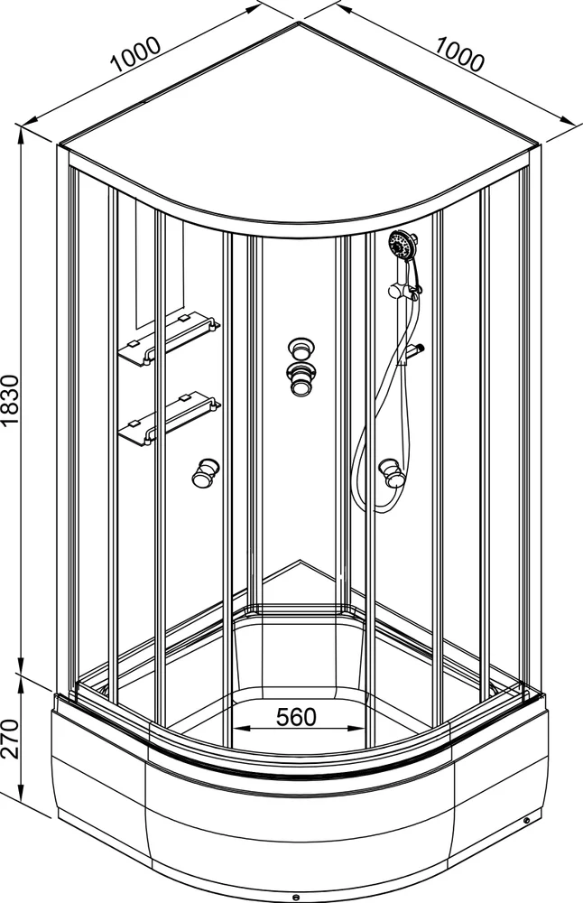 Стильная душевая кабина AvaCan EM2710 N с гидромассажем сочетает в себе высокую функциональность, практичность и надежность. Для изготовления применяют безопасное закаленное стекло толщиной 5 мм, надежно фиксируемое алюминиевым профилем. Цвет профиля хром. В комплекте сифон, зеркало, душевой гарнитур, полочки, гидромассажные форсунки, смеситель, переключатель режимов.