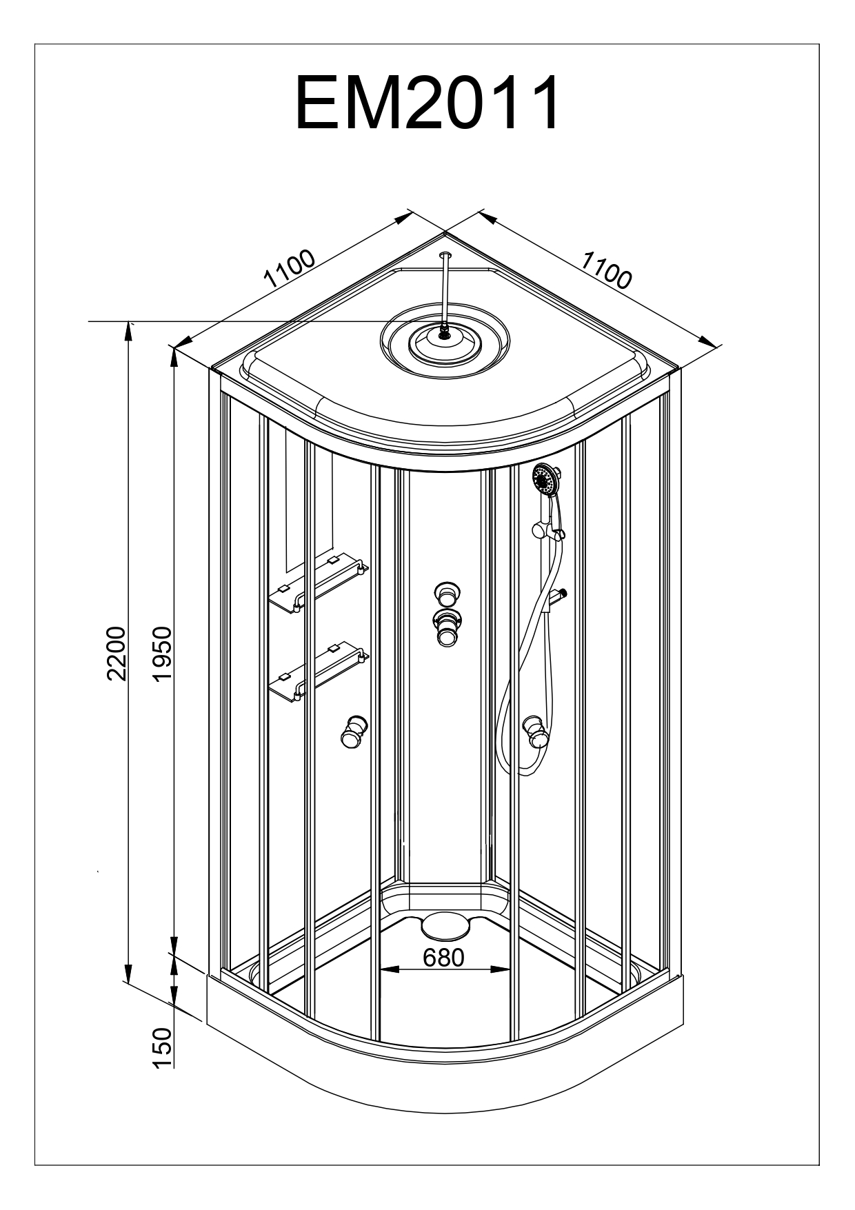 Гидробокс Avacan 110x110 см EM2011GM+EL, хром/узор (безсиликоновая сборка)