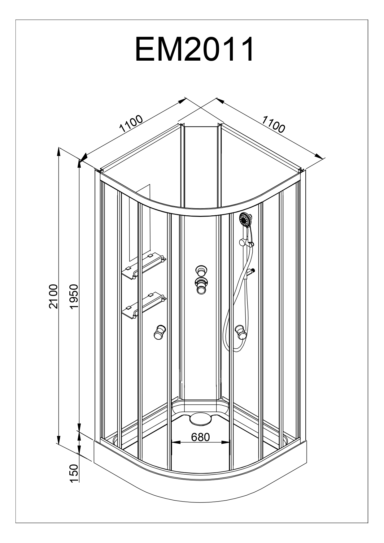 Гидробокс Avacan 110x110 см EM2011NLED+GM, хром/узор (безсиликоновая сборка)
