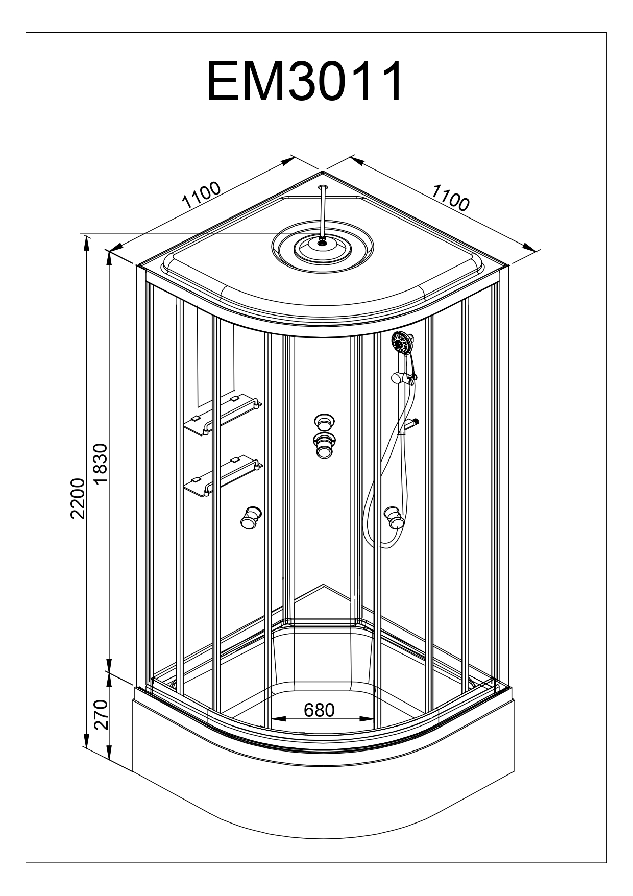 Стильная душевая кабина с внутренней сборкой AvaCan EM3011 LED с гидромассажем сочетает в себе высокую функциональность, практичность и надежность. Для изготовления применяют безопасное закаленное стекло толщиной 5 мм, надежно фиксируемое алюминиевым профилем. Цвет профиля хром. В комплекте сифон, зеркало, сенсорный пульт управления, душевой гарнитур, полочки, гидромассажные форсунки, led-подсветка, смеситель, переключатель режимов, тропический (верхний) душ, вентиляция, радио.