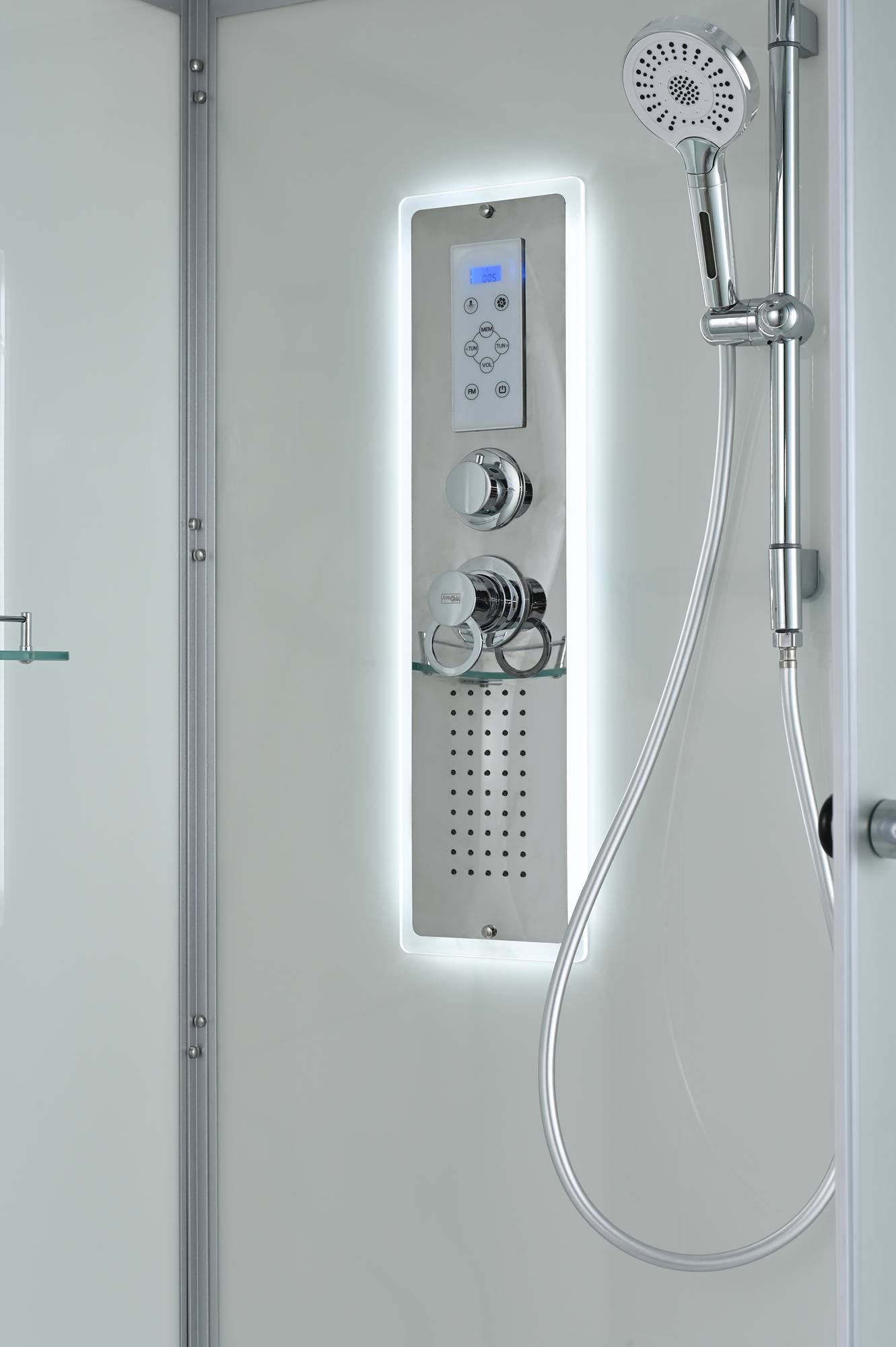 Стильная душевая кабина AvaCan D 2012L LED сочетает в себе высокую функциональность, практичность и надежность. При изготовлении применяется безопасное закаленное стекло толщиной 4 мм (матовое), надежно фиксируемое алюминиевым профилем. Сборка без силикона (увеличивает срок службы), внутренняя сборка(облегчает установку и ревизию; позволяет установить в ограниченном пространстве), смеситель резьбовой (без хомутов). Съемный экран поддона (позволяет осуществлять ревизию сифона). Цвет профиля матовый хром. Двойные металлические ролики дверей (увеличивают срок службы).В комплекте : душевая штанга, полочка, тропический (верхний) душ, арома-лейка с витамином С (картридж съемный), сенсорный пульт (блютуз, радио, LED подсветка в крыше и в центральной панели, вентелятор.)