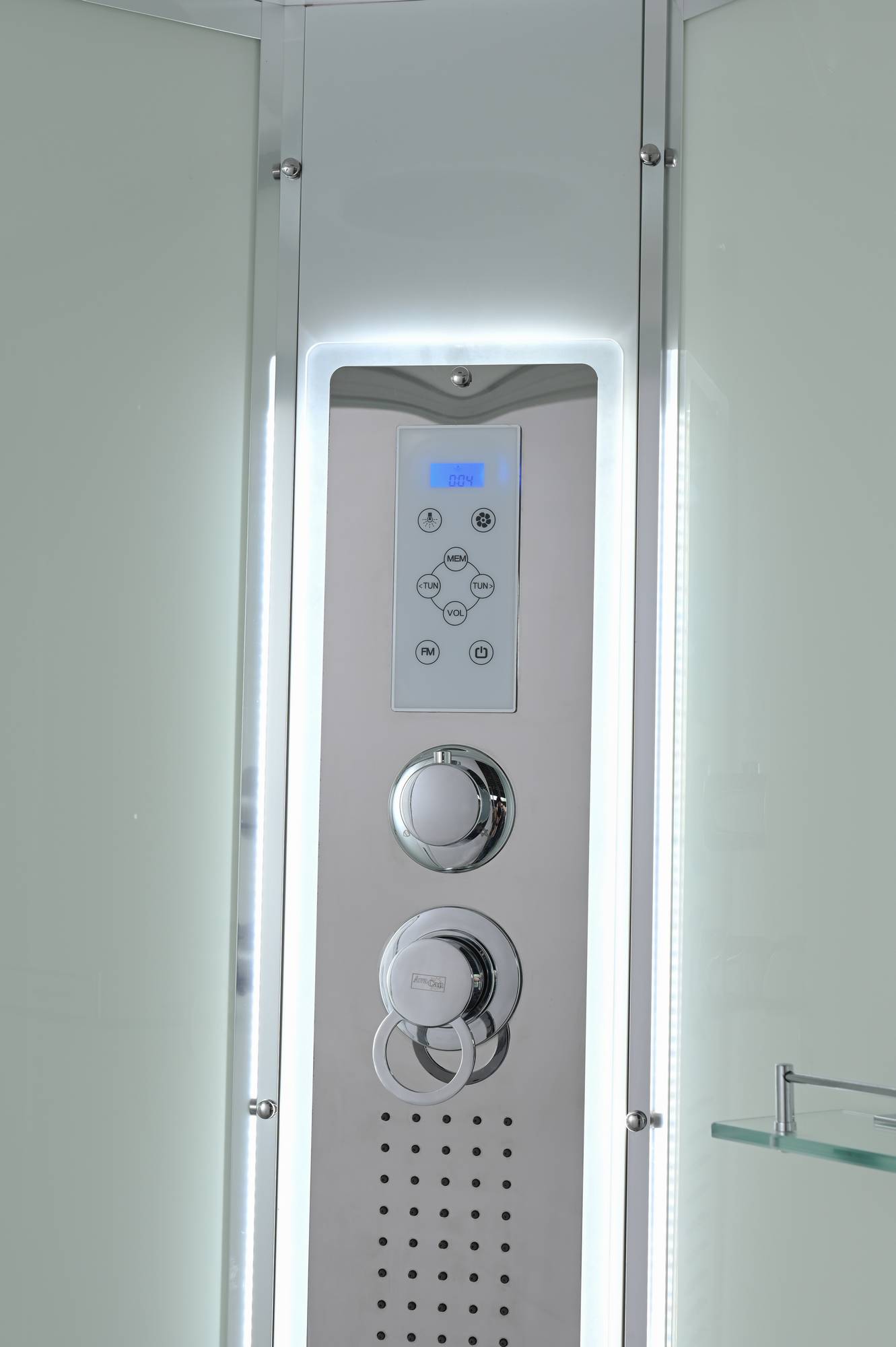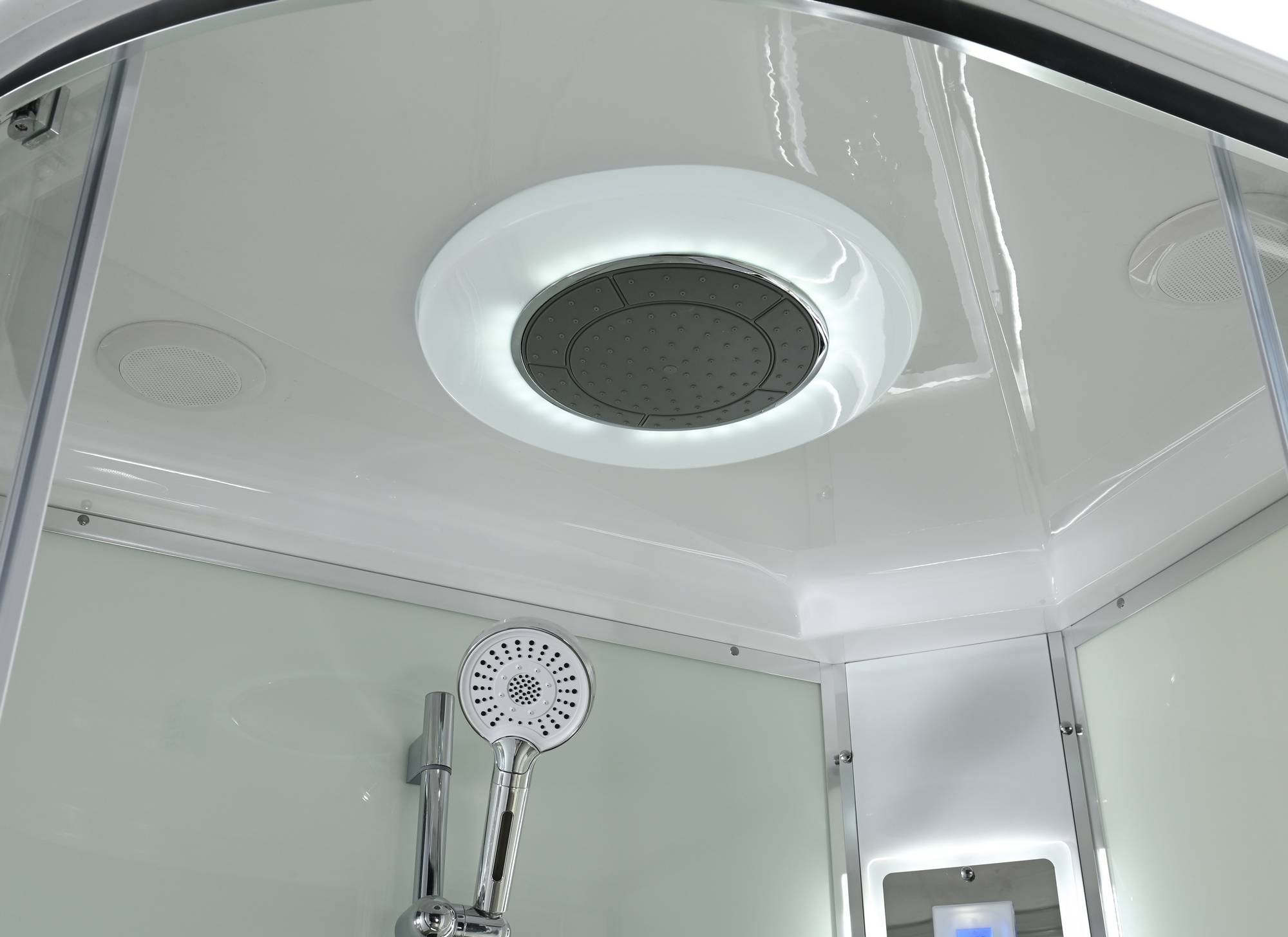 Стильная душевая кабина AvaCan EM2812RLEDT сочетает в себе высокую функциональность, практичность и надежность. При изготовлении применяется безопасное закаленное стекло толщиной 5 мм (прозрачное), надежно фиксируемое алюминиевым профилем. Сборка без силикона (увеличивает срок службы), внутренняя сборка(облегчает установку и ревизию; позволяет установить в ограниченном пространстве), смеситель резьбовой (без хомутов). Съемный экран поддона (позволяет осуществлять ревизию сифона). Цвет профиля хром. Двойные металлические ролики дверей (увеличивают срок службы).В комплекте : душевая штанга, две полочки , тропический (верхний) душ, арома-лейка с витамином С (картридж съемный),полимерная вставка в поддон(имитация дерева),сифон, ручки дверей из нержавейки , двойные ролики ,пульт сенсорный(Блютуз ,LED подсветка ,радио ,вытяжка),гидромассаж спины.