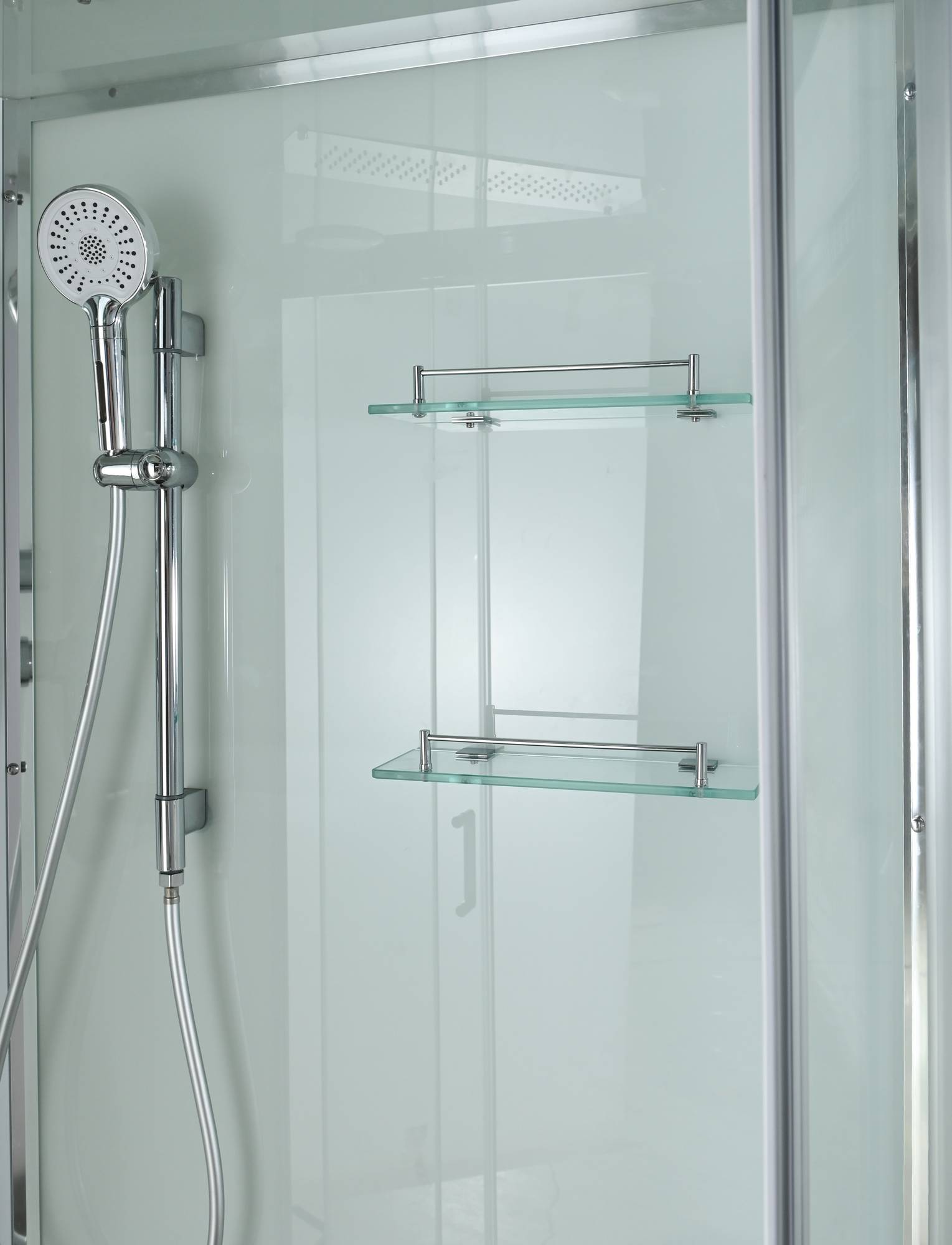 Стильная душевая кабина AvaCan сочетает в себе высокую функциональность, практичность и надежность. При изготовлении применяется безопасное закаленное стекло, надежно фиксируемое алюминиевым профилем.Профиль сделан из алюминия повышенной прочности. Сборка без силикона (увеличивает срок службы, защищает от протечек), внутренняя сборка (облегчает установку и ревизию; позволяет установить в ограниченном пространстве и обойтись без демонтажа других сантехнических приборов), смеситель резьбовой (без хомутов). Съемный экран поддона (позволяет осуществлять подключение и ревизию сифона).Двойные металлические ролики дверей (распределение нагрузки на два ролика, увеличивают срок службы). Душевая штанга(позволяет регулировать по высоте ручную лейку), ручная арома-лейка с витамином С (картридж в комплекте,есть возможность замены или удаления картриджа), полочки(из стекла, с ограничителем), сифон с гидрозатвором, сенсорный пульт управления с функциями: блютуз, LED подсветка, радио, вытяжка, гидромассаж спины, тропический (верхний) душ.