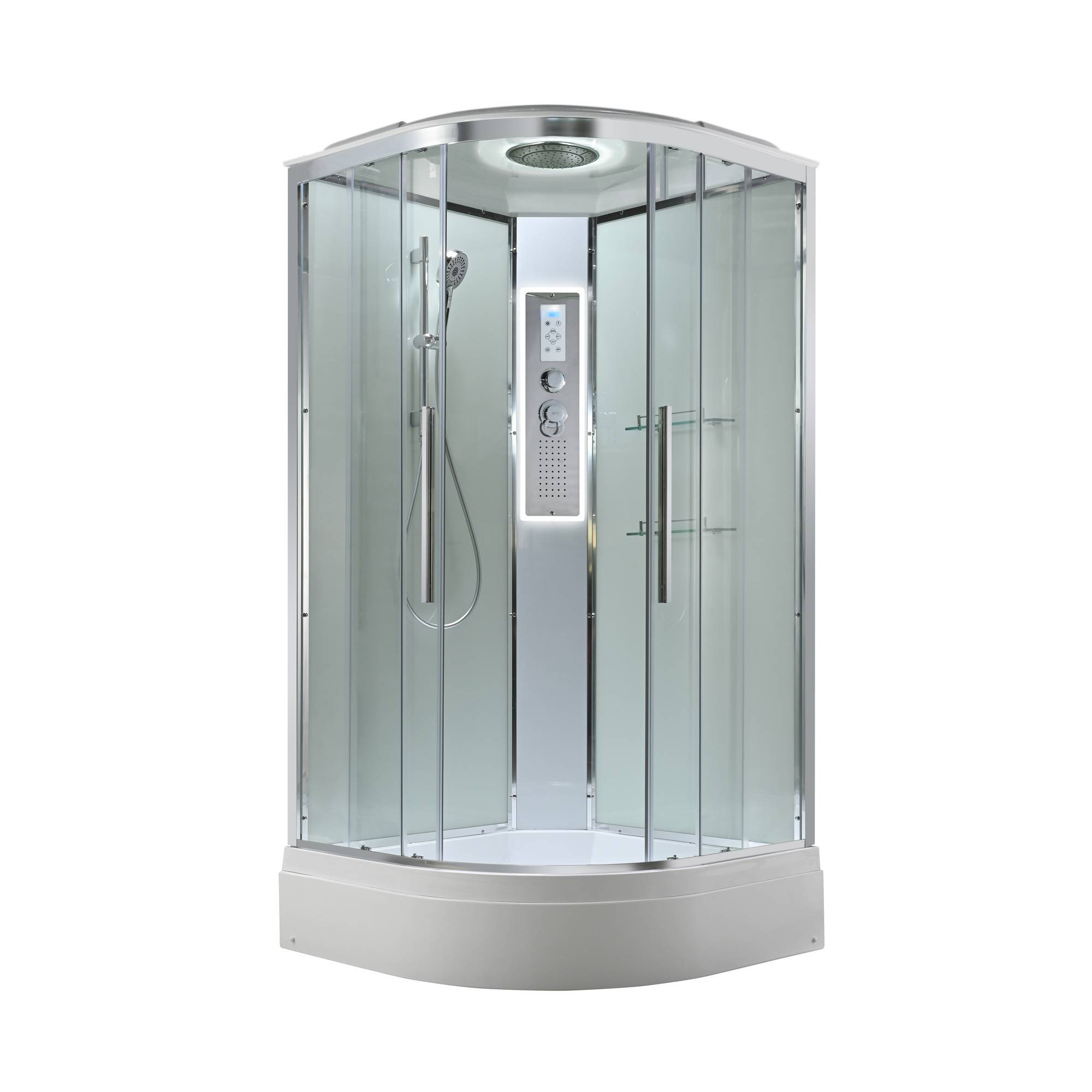 Стильная душевая кабина AvaCan сочетает в себе высокую функциональность, практичность и надежность. При изготовлении применяется безопасное закаленное стекло, надежно фиксируемое алюминиевым профилем.Профиль сделан из алюминия повышенной прочности. Сборка без силикона (увеличивает срок службы, защищает от протечек), внутренняя сборка (облегчает установку и ревизию; позволяет установить в ограниченном пространстве и обойтись без демонтажа других сантехнических приборов), смеситель резьбовой (без хомутов). Съемный экран поддона (позволяет осуществлять подключение и ревизию сифона).Двойные металлические ролики дверей (распределение нагрузки на два ролика, увеличивают срок службы). Душевая штанга(позволяет регулировать по высоте ручную лейку), ручная арома-лейка с витамином С (картридж в комплекте,есть возможность замены или удаления картриджа), полочки(из стекла, с ограничителем), сифон с гидрозатвором, сенсорный пульт управления с функциями: блютуз, LED подсветка, радио, вытяжка, гидромассаж спины, тропический (верхний) душ.