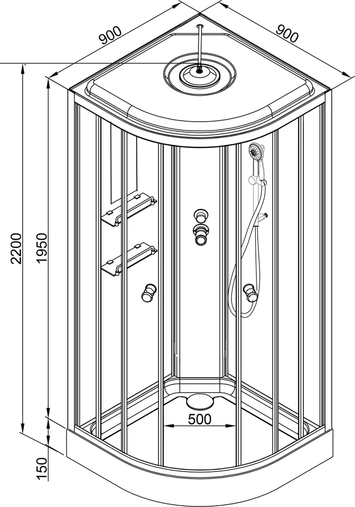 Гидробокс Avacan 90x90 см EM1590GM+EL, хром/узор (безсиликоновая сборка)