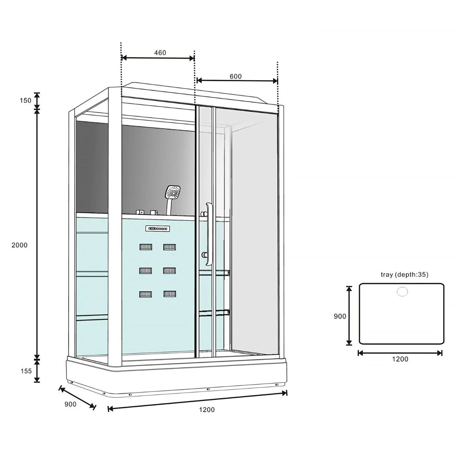 Гидробокс LORANTO CS 127-3A 120х90 см R, хром/прозрачное