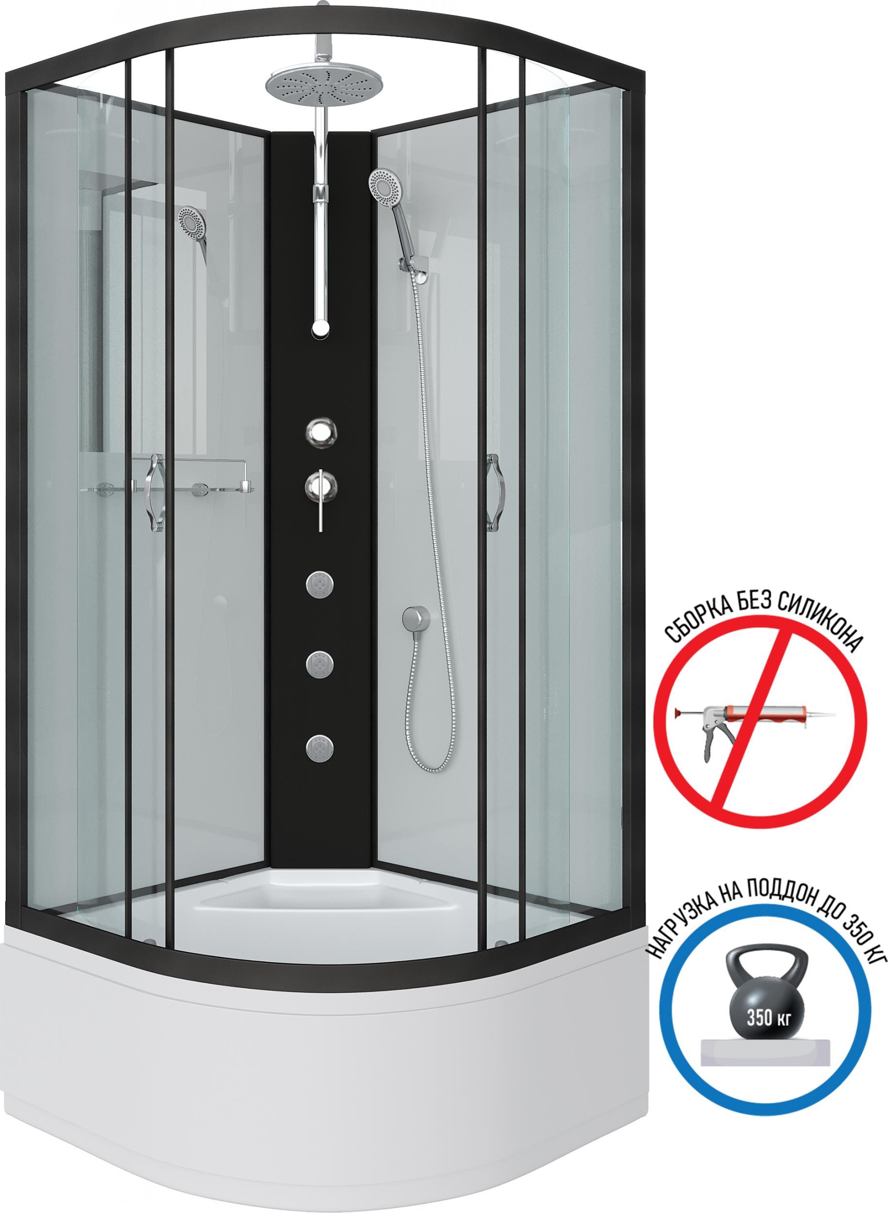 - Бессиликоновая душевая кабина Niagara NG 6707-14BKG Без крыши с гидромассажем и тропическим душем
