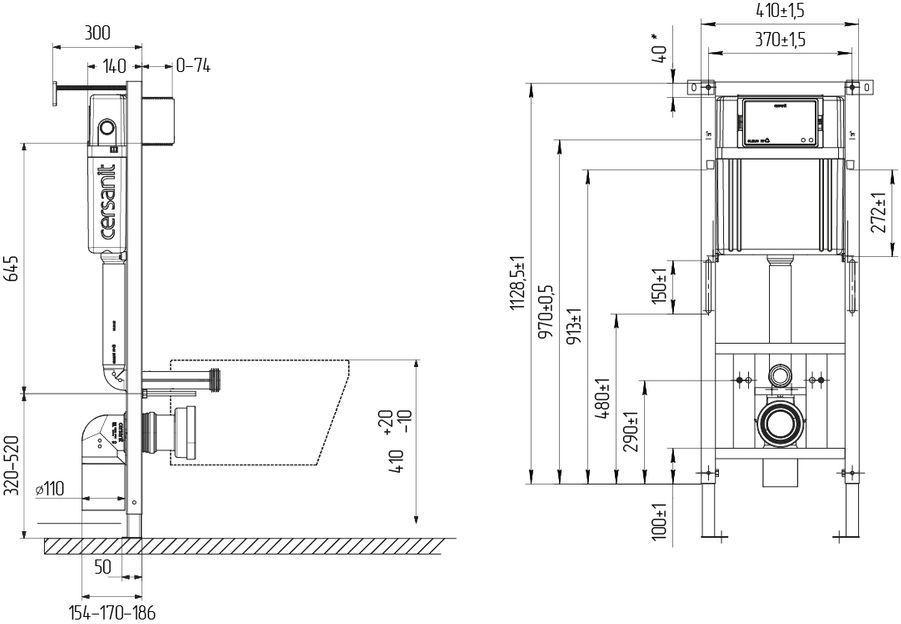 Модель инсталляции 40 см подходит для помещений с различной архитектурой как для просторных ванных комнат, так и для компактных санузлов, где на счету каждый сантиметр. Это продукт, учитывающий все возможные особенности планировки: