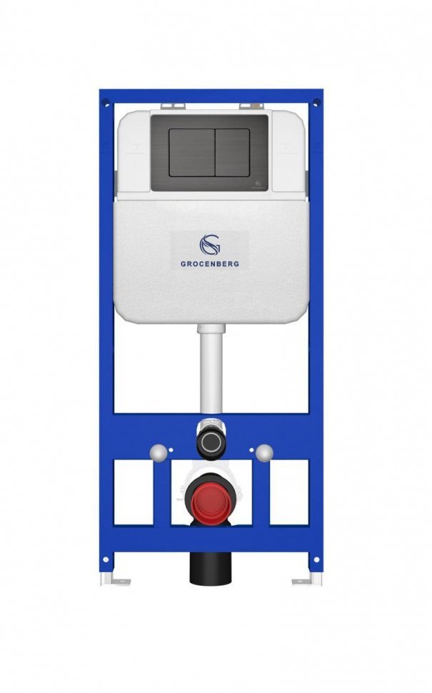Инсталляция для унитаза Grocenberg GS3050-KM3080BG с металлической рамой, двойной системой слива 3/6 литров. Кнопка смыва графит.
