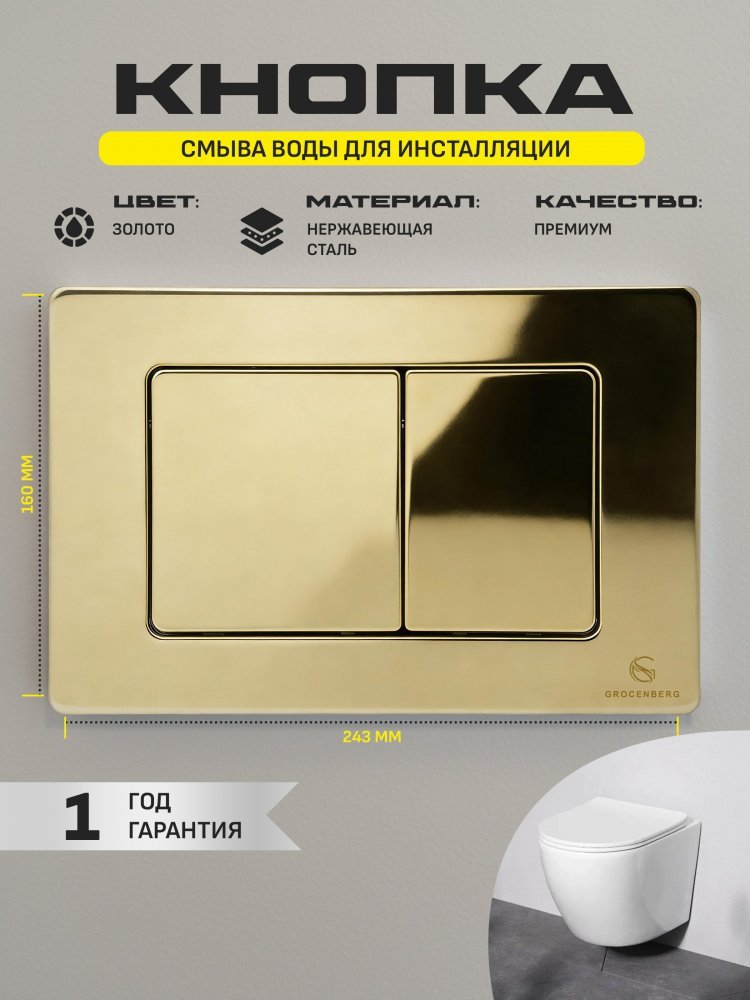 Инсталляция для подвесного унитаза Grocenberg GS3050-KM3080GO с кнопкой смыва золото