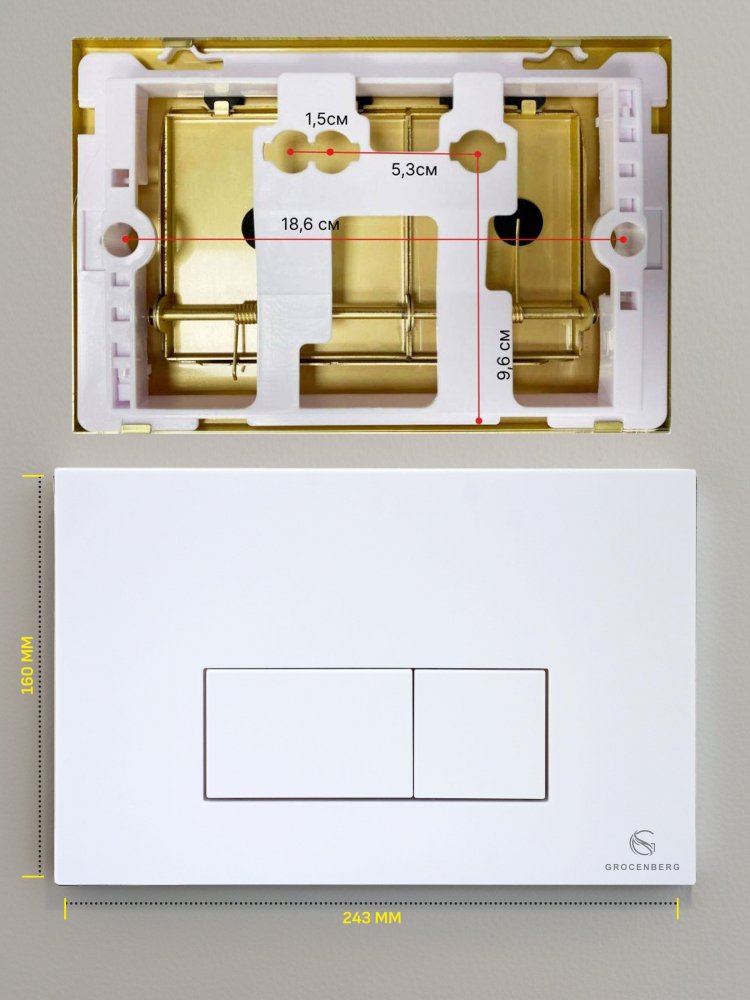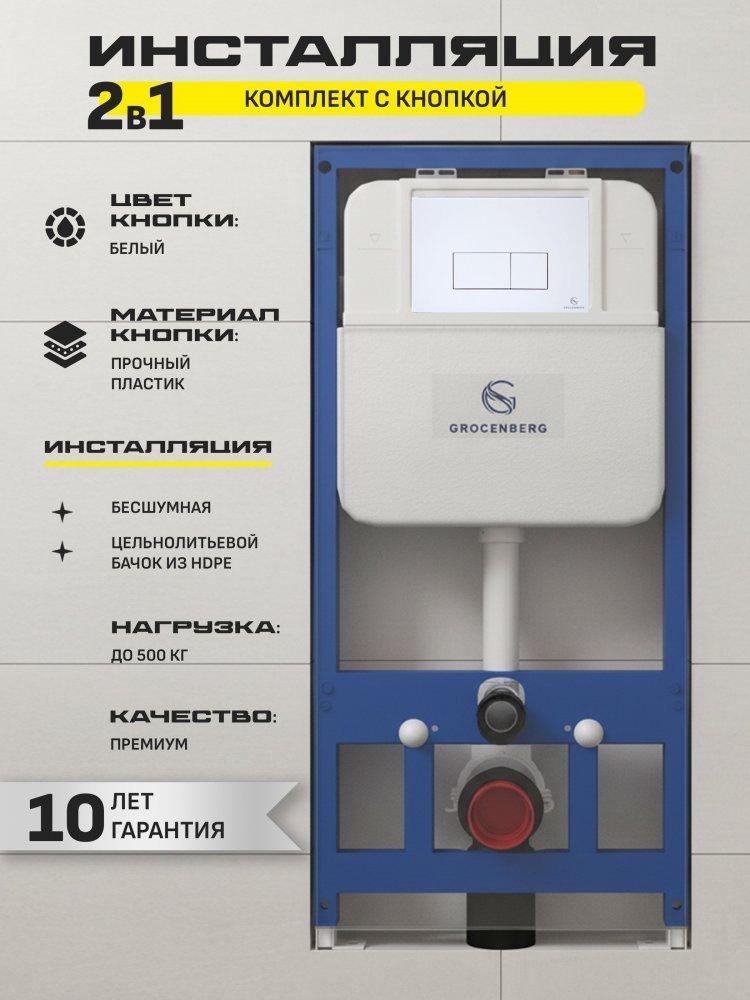 - Инсталляция Grocenberg GS3050-KP3070W — это надёжность и долговечность. Плавный и бесшумный механизм кнопки для смыва обеспечивает комфорт при каждом использовании. Белый цвет инсталляции гармонично впишется в любой интерьер, став его неотъемлемой частью.