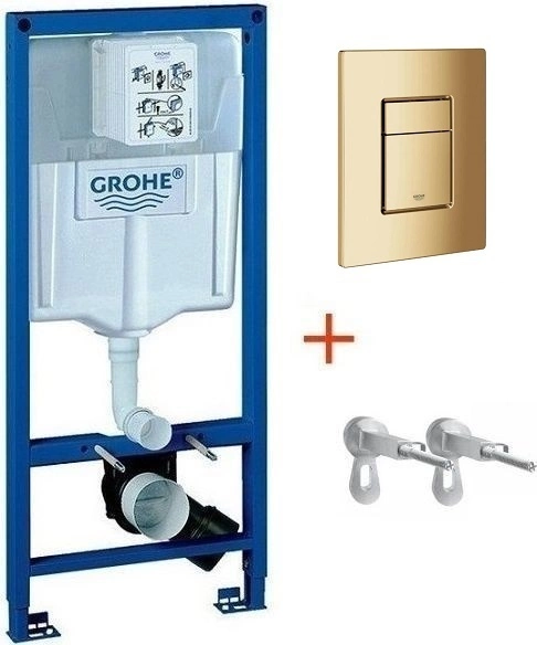 Система инсталляции для унитаза Grohe Rapid SL 38772001+38732GL0- комплект 3 в 1, монтажная высота 1,13 м. Кнопка смыва золотая глянцевая.