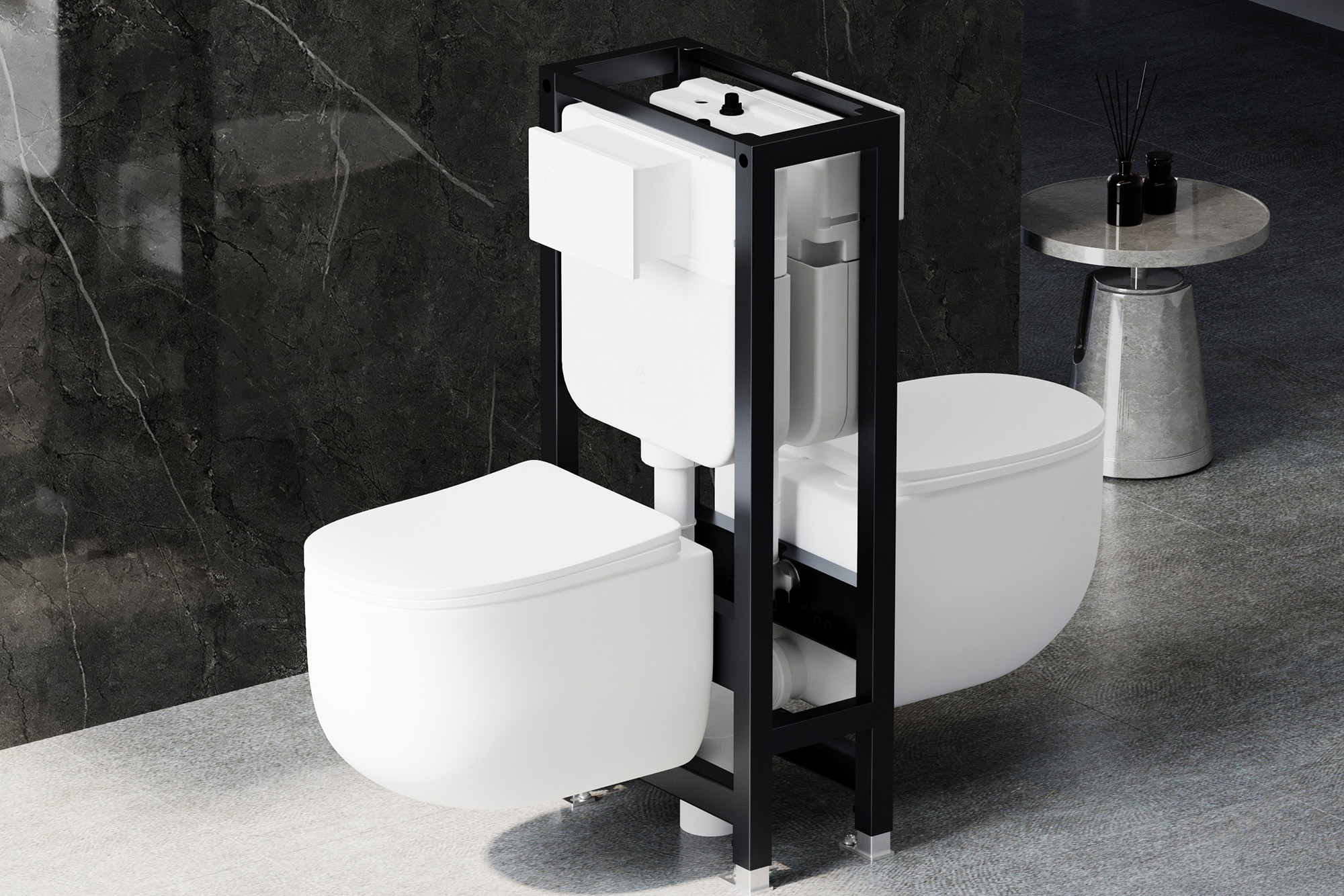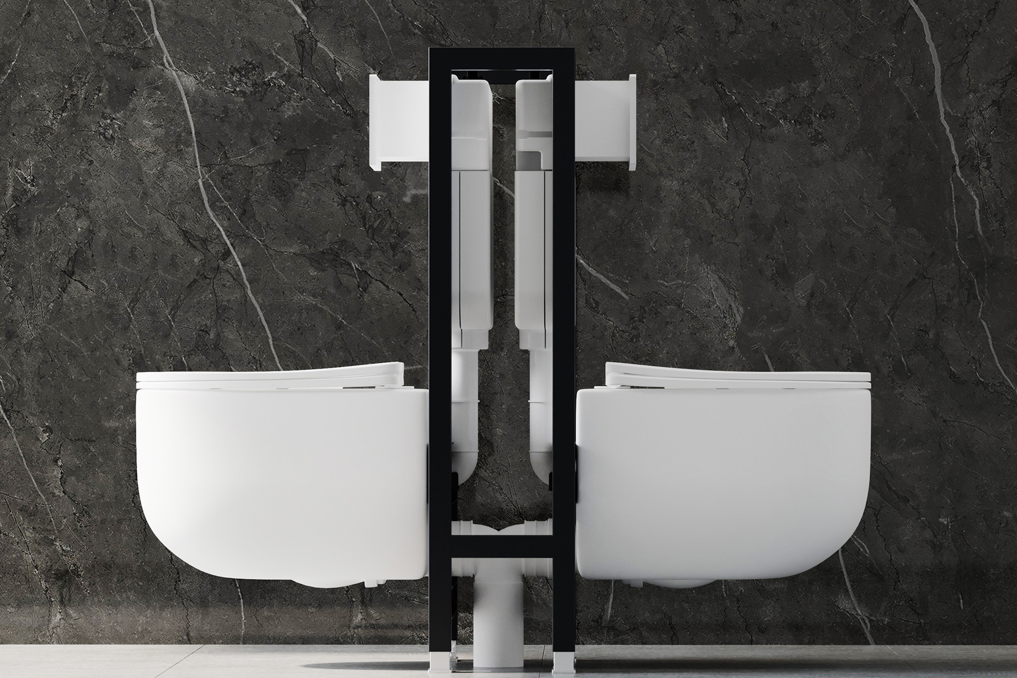 Инсталляция для унитаза двойная самонесущая Abber AC0106, для двух подвесных унитазов. Кнопка смыва приобретается отдельно.