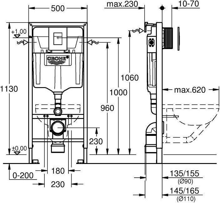Характеристики инсталляция с унитазом Grohe + Roca (38772001+34647L000+Z.RU93.0.768.2)