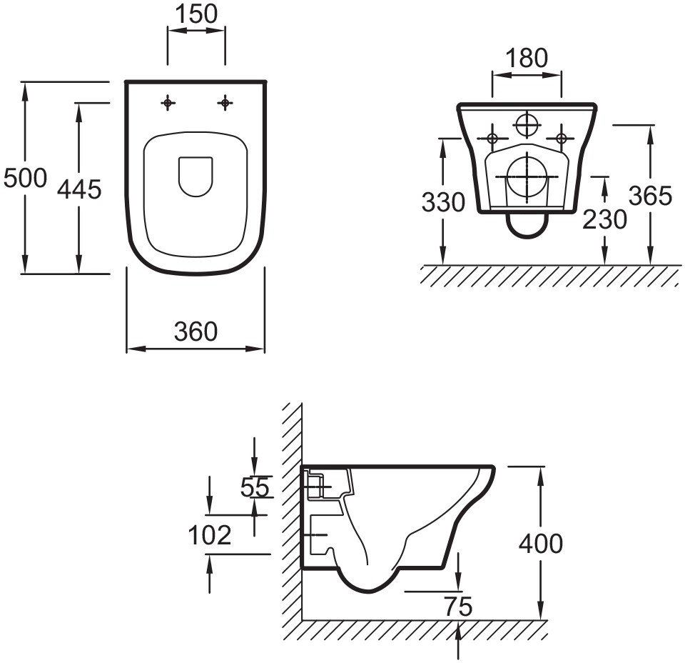 - Безободковая конструкция Rimless: высочайший уровень гигиены.