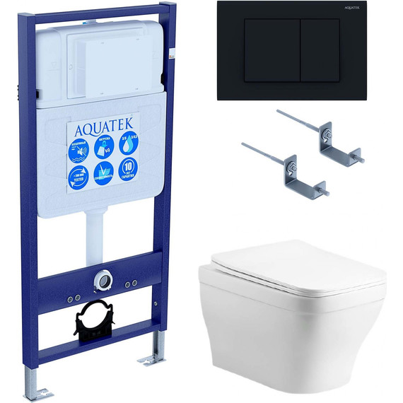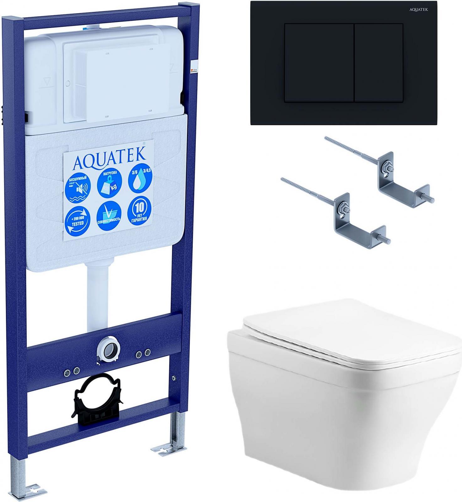 Инсталляция с подвесным унитазом комплект: Aquatek Set INS-0000012 с подвесным безободковым унитазом Амадео AQ1180-00 сиденье микролифт, крепление, кнопка смыва чёрная матовая