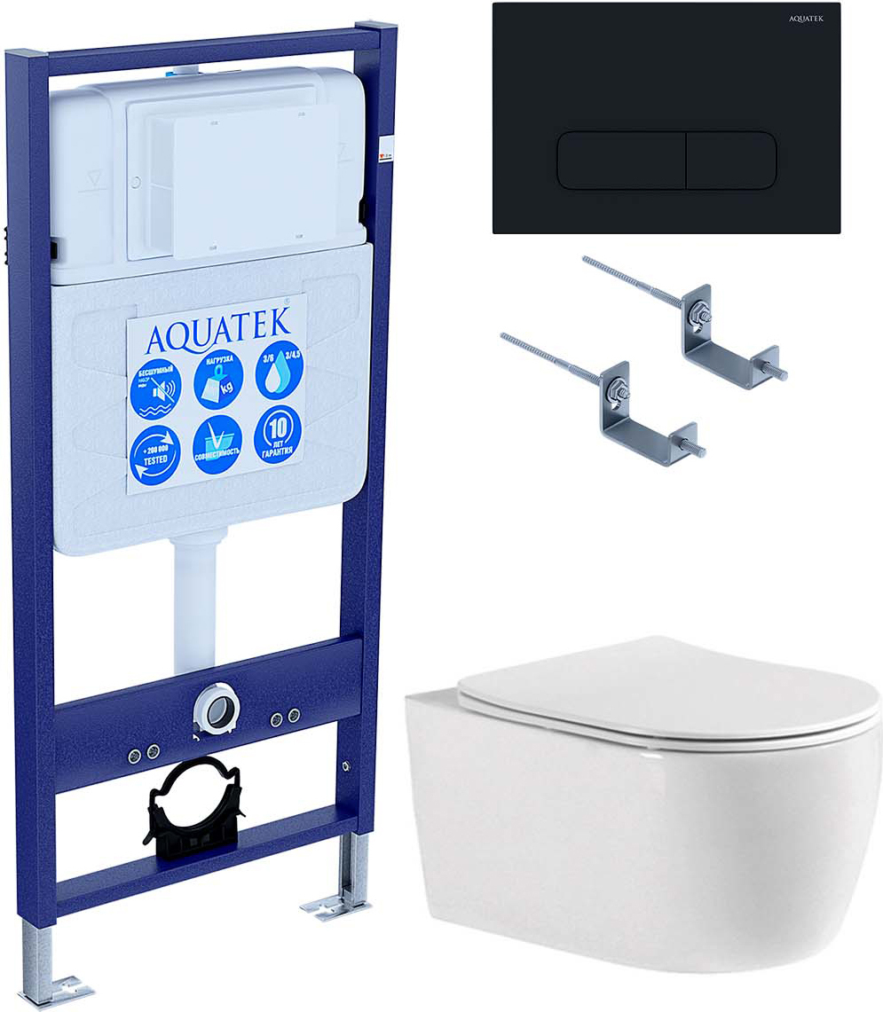 Инсталляция с подвесным унитазом комплект: Aquatek Set INS-0000012 с подвесным безободковым унитазом Европа AQ1106-00 сиденье микролифт, крепление, кнопка смыва чёрная - фото